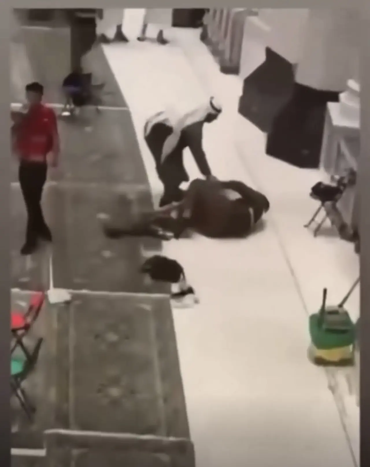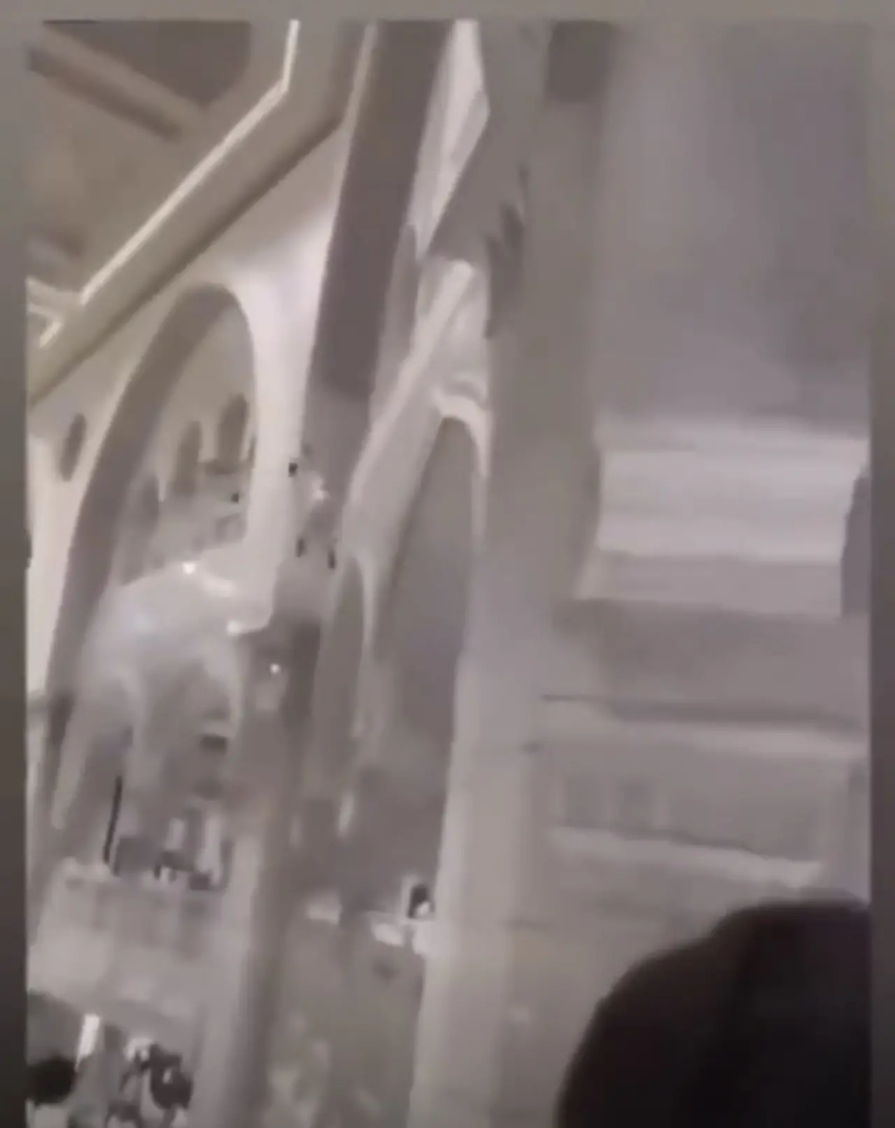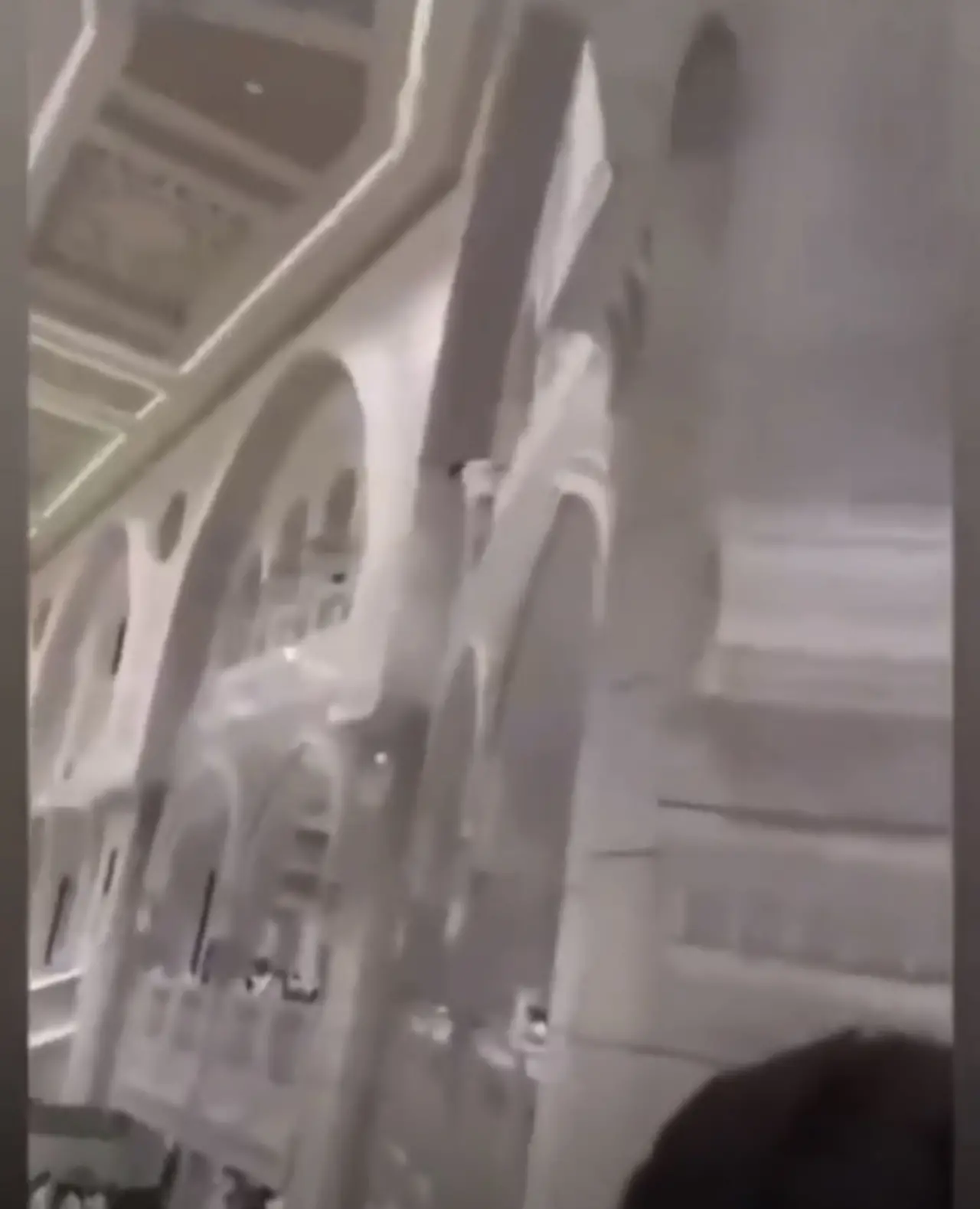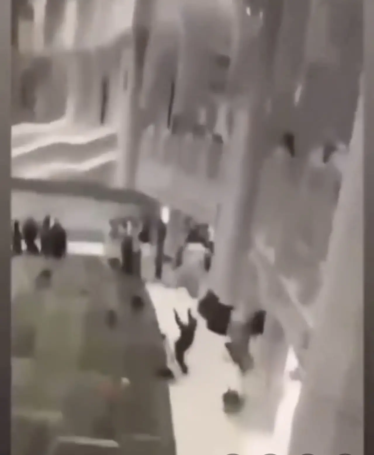 Mescid-i Haram'da görevli bir güvenlik görevlisi, bir kişinin mescidin üst katlarından atlayarak intihar girişiminde bulunmasının ardından olaya müdahale etmek için acele etti.