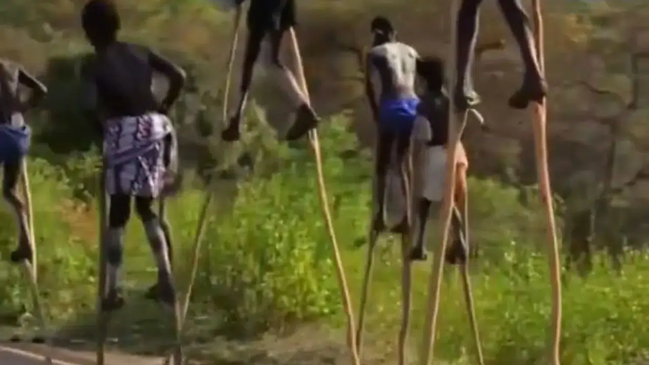Etiyopya’da yaşayan Banna Kabilesi çocukları, küçük yaştan itibaren çubuklar üzerinden bu şekilde yürümeyi öğreniyorlar.Dünyanın büyük ilgisini çeken bu durum,önceden arslanlar,yılanlar ve diğer yırtıcı hayvanları daha yüksekten görmek ve bulunduğun yerden daha uzağı görebilmek için olduğu biliniyordu.Günümüzde ise ülkeye gelen turistlerin ilgisini çekebilmek için yapıldığı ve bunun için özel bir dengede durma ve yürüme tekniğinin geliştirilmiş olduğu ifade ediliyor.