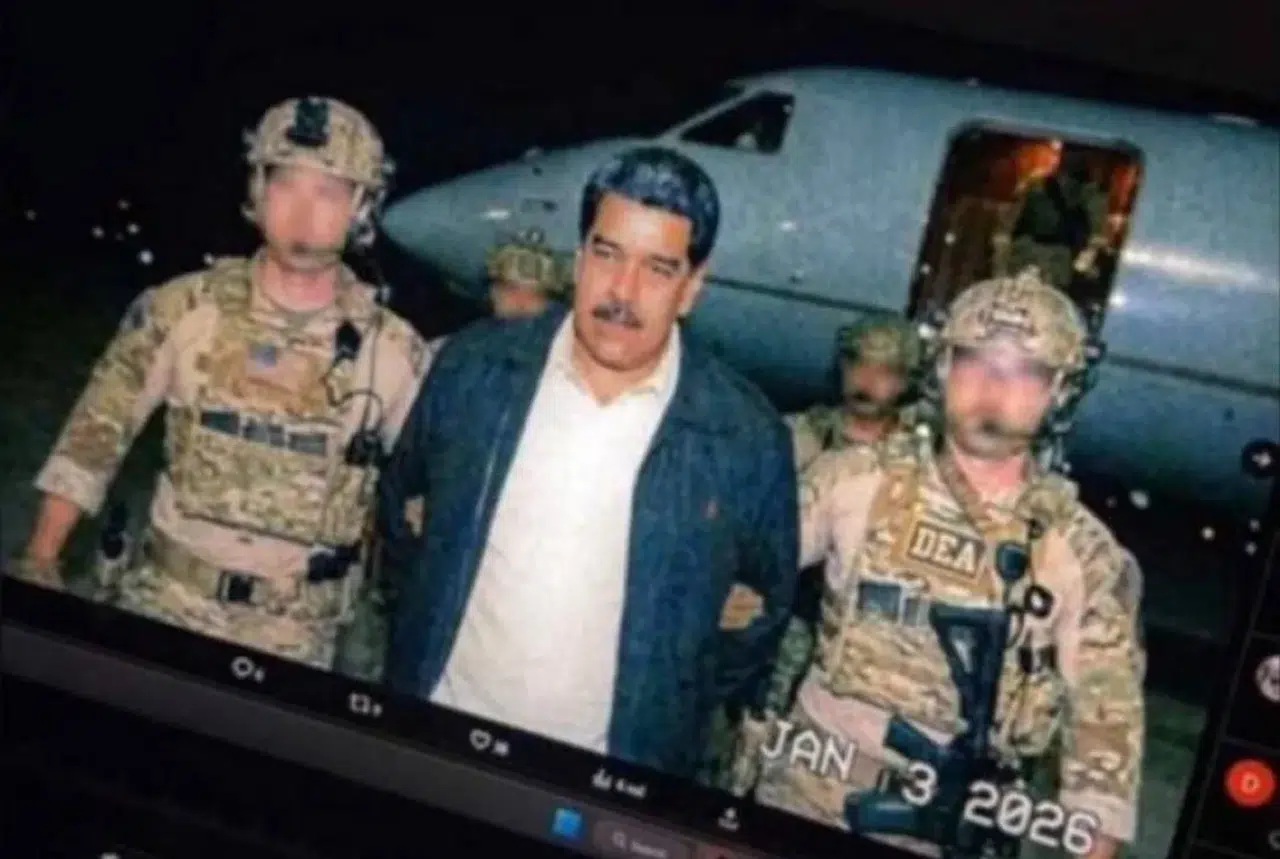 Venezüela Devlet Başkanı Maduro'ya ait olduğu iddia edilen ilk fotoğraf paylaşıldı.Fotoğrafta elleri arkadan kelepçelenen Maduro'nun bir askeri uçaktan indirilerek,ABD Özel Operasyon Birliği Delta Force'den indirilerek bilinmeyen bir yere götürüldüğ görülüyor. Görüntüler henüz teyit edilemedi.