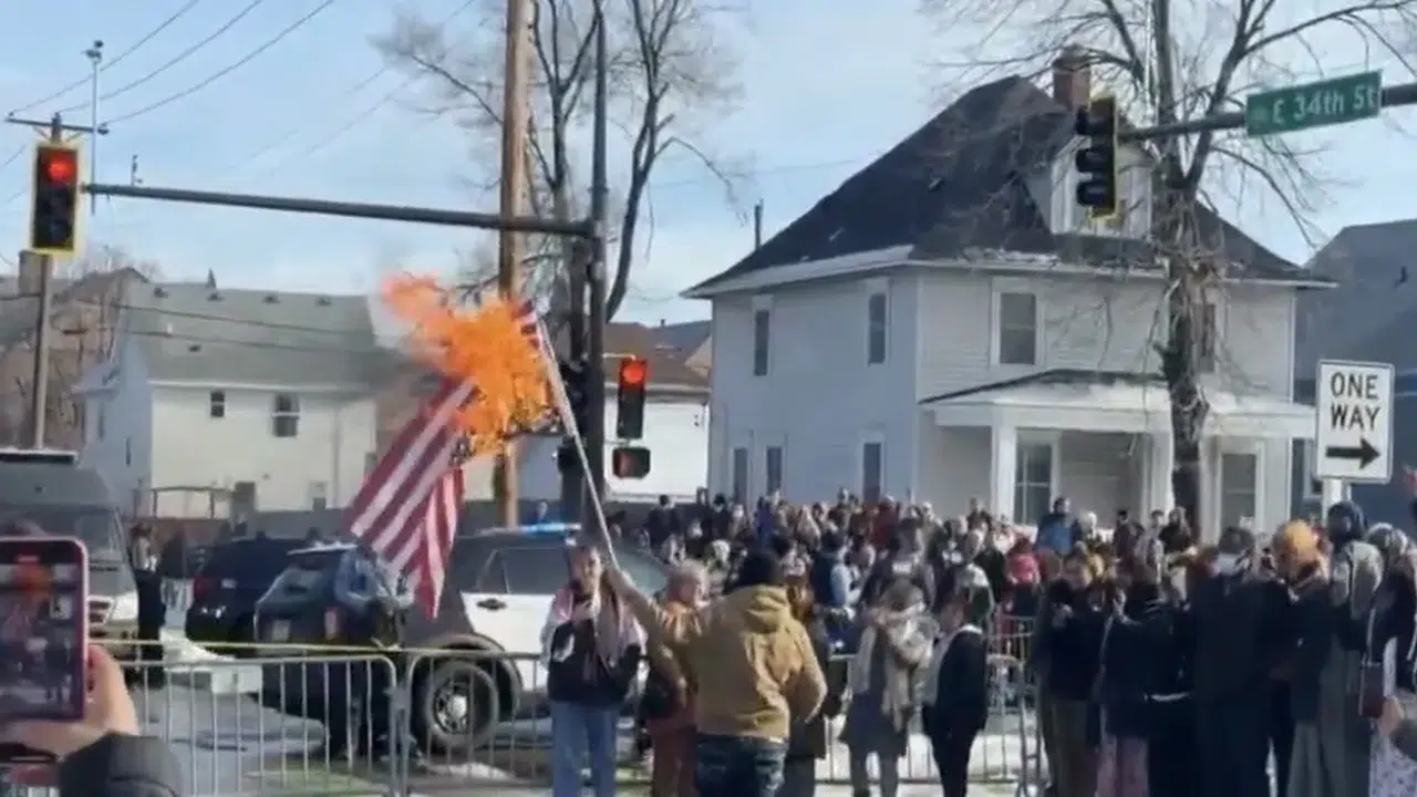 POLİSİN BİR KİŞİYİ ÖLDÜRDÜĞÜ YERDE ABD BAYRAĞI BÖYLE YAKILDI!