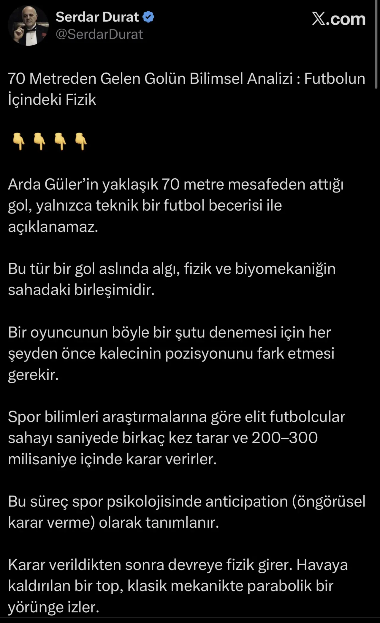 Bazen bir gol, küçük bir fizik deneyine dönüşebilir. @10ardaguler
