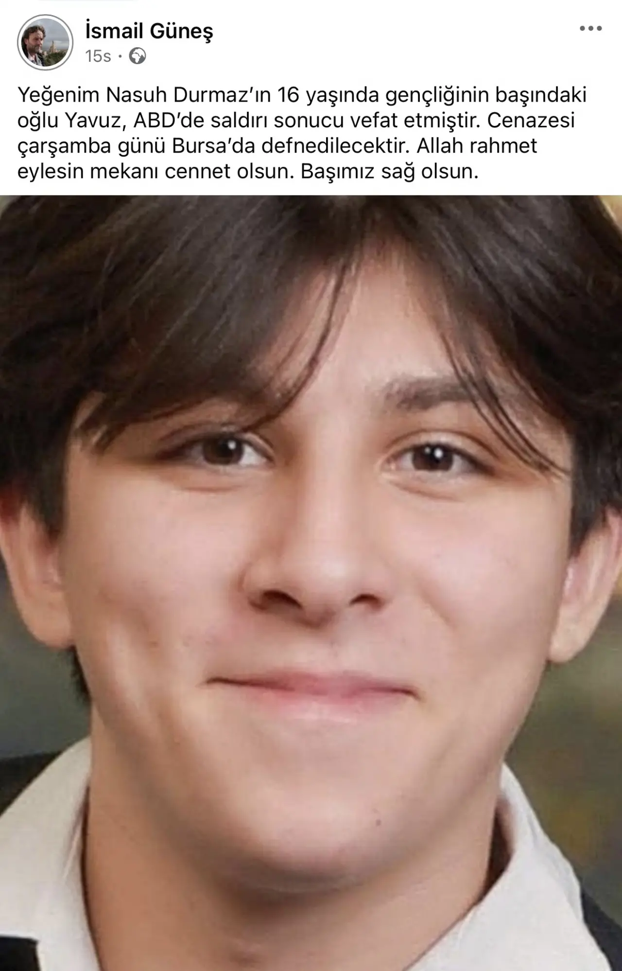 Ünlü yönetmen İsmail Güneş’in de yeğeni olduğu öğrenilen 17 yaşındaki Yavuz Durmaz, olay sırasında ateşlenen silahtan çıkan kurşunların hedefi oldu. Amca Hasan Durmaz'dan edinilen bilgiye göre; Yavuz Durmaz kavganın doğrudan tarafı veya hedefi değildi, ancak taraflar arasında rastgele açılan ateş sonucu vurularak olay yerinde hayatını kaybetti.Türk Sineması’nda unutulmaz filmlere imza atan tanınmış yönetmen İsmail Güneş,yeğeninin vefatını, sosyal medya hesabı üzerinden, “Yeğenim Nasuh Durmaz’ın 16 yaşında gençliğinin başındaki oğlu Yavuz, ABD’de saldırı sonucu vefat etmiştir. Cenazesi çarşamba günü Bursa’da defnedilecektir. Allah rahmet eylesin mekanı cennet olsun. Başımız sağ olsun.” şeklinde yazarak duyurdu.