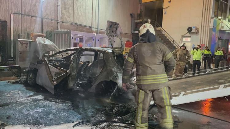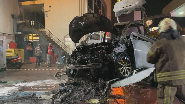 Kısa bir süre sonra şarj olan otomobilde bilinmeyen nedenle patlama meydana geldi. Patlamanın ardından otomobil alev alev yandı.