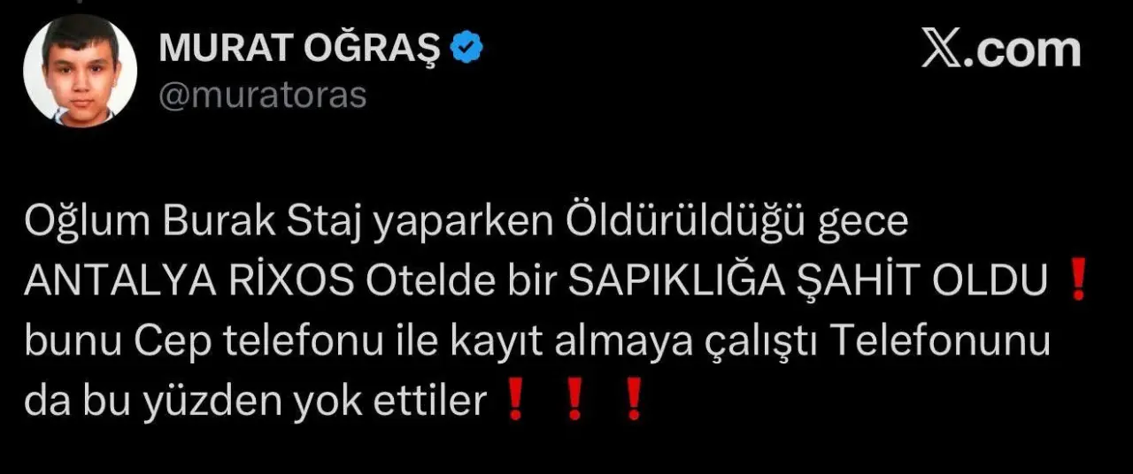 “Oğlum Burak staj yaparken öldürüldüğü gece Antalya Rixos otelde bir sapıklığa şahit oldu.”