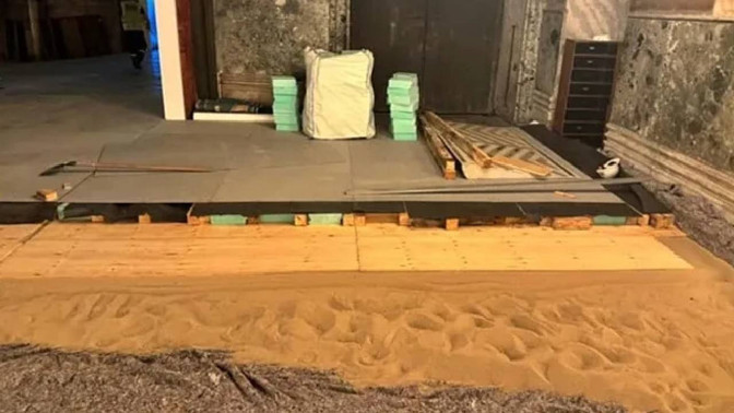 Çok katmanlı geçici döşeme sistemi uygulandı.