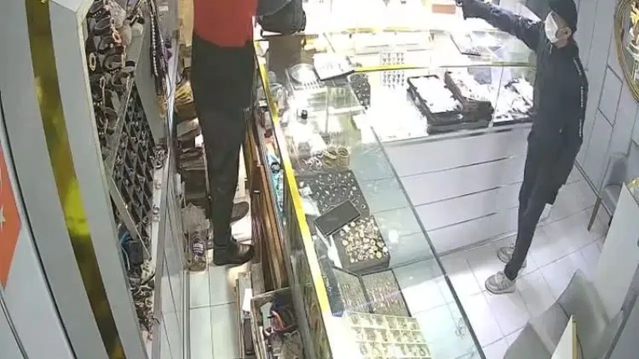Soygun anı iş yerinin güvenlik kamerasıyla kaydedildi. Görüntülerde, şüphelinin kuyumcuya 'çabuk doldur nakitte koy' diyerek silah doğrultması ve kuyumcunun sahibinin şüpheliye 'sakin ol' diyerek altınları doldurduğu anlar yer aldı.