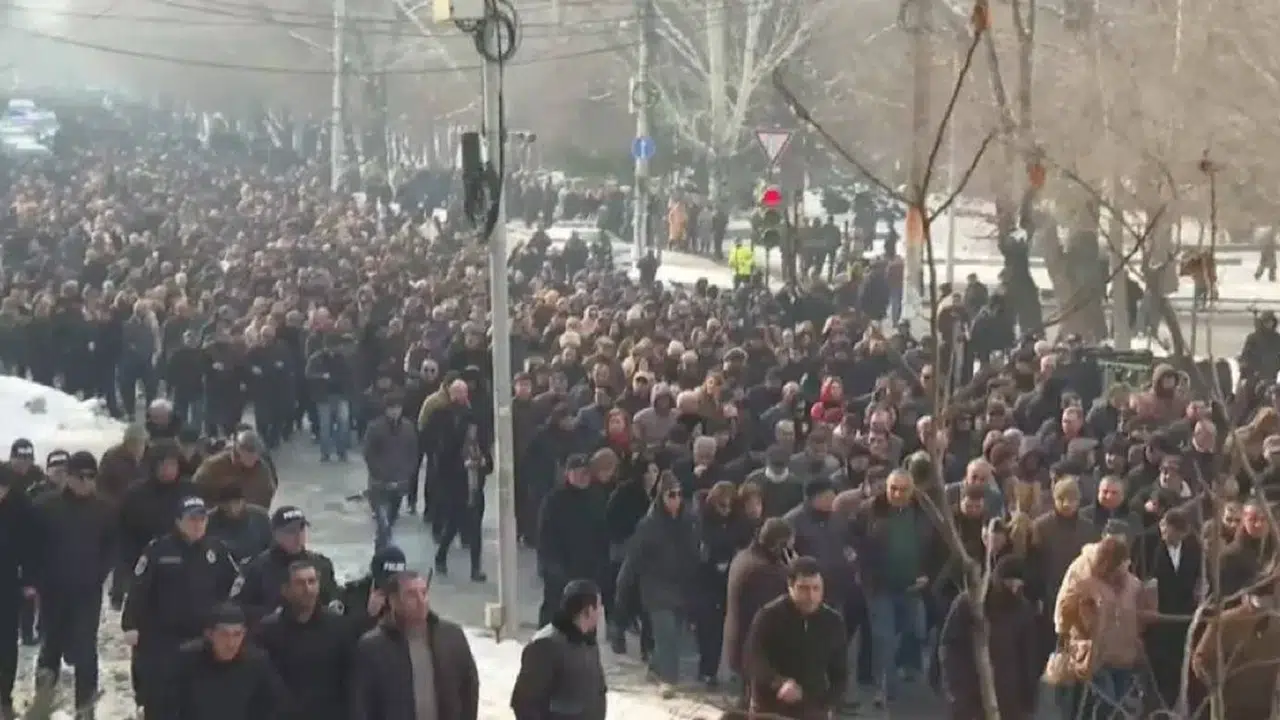 Erivan'ın merkezinde on binlerce insan, Ermeni Apostolik Kilisesi'nin en yüksek ruhani lideri (Katolikos Garegin II) Ktrich Nersisyan'ın barışçıl bir şekilde istifa etmesini talep ederek sokaklara döküldü.