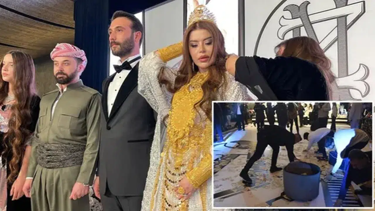 Nikahın ardından Irak’tan gelen davetliler, özel kutular içinde getirdikleri altınları takmak için uzun süre kuyruk oluşturdu.