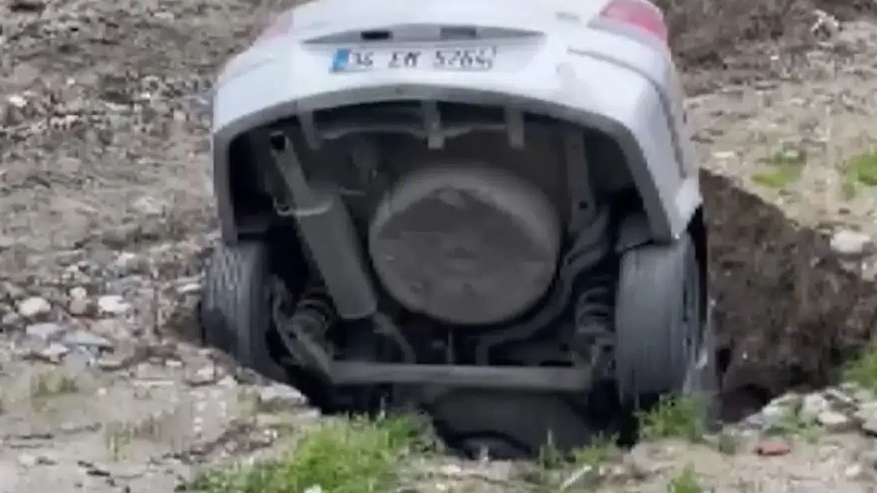 Olay, Esenyurt Battalgazi Mahallesi’nde, Haramidere'nin yanında bulunan boş arazide meydana geldi. Arazide oluşan göçük nedeniyle park halindeki otomobil, kayan toprakla birlikte çukurun içine düştü. İhbar üzerine bölgeye polis ve zabıta ekipleri sevk edildi. Polis ekipleri çevrede güvenlik önlemi alarak sokağı şeritle kapattı. Dere kenarında, İSKİ koruma alanı içerisinde kalan noktaya İSKİ ekipleri de gelerek inceleme yaptı. Göçüğün çevresinde risk oluşabileceği değerlendirilirken, önlem amaçlı emniyet şeridi çekilerek araziye girişler engellendi.