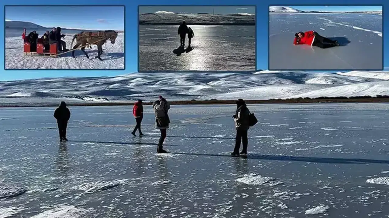 ÇILDIR GÖLÜ'NÜN YÜZEYİ NİHAYET BUZ TUTMAYA BAŞLADI!