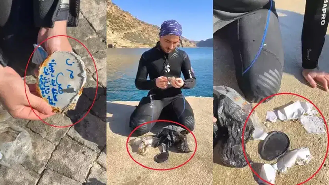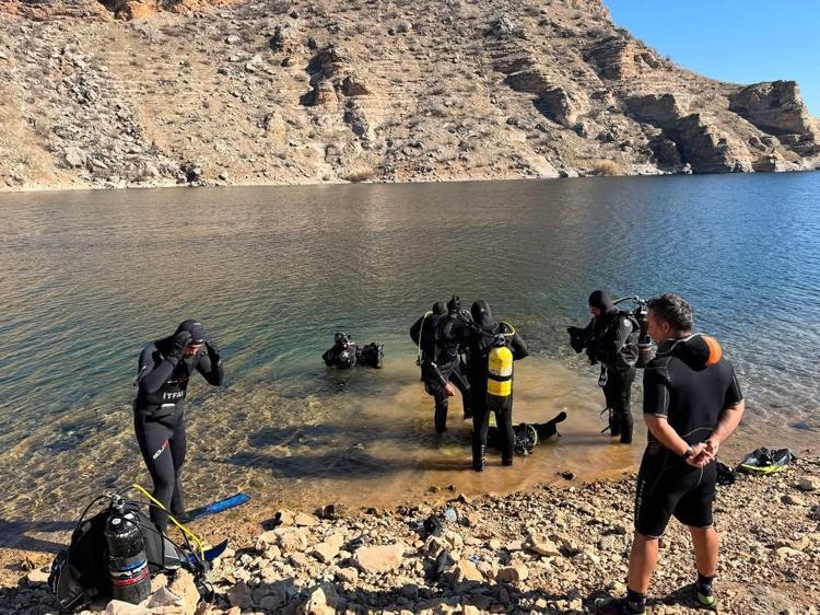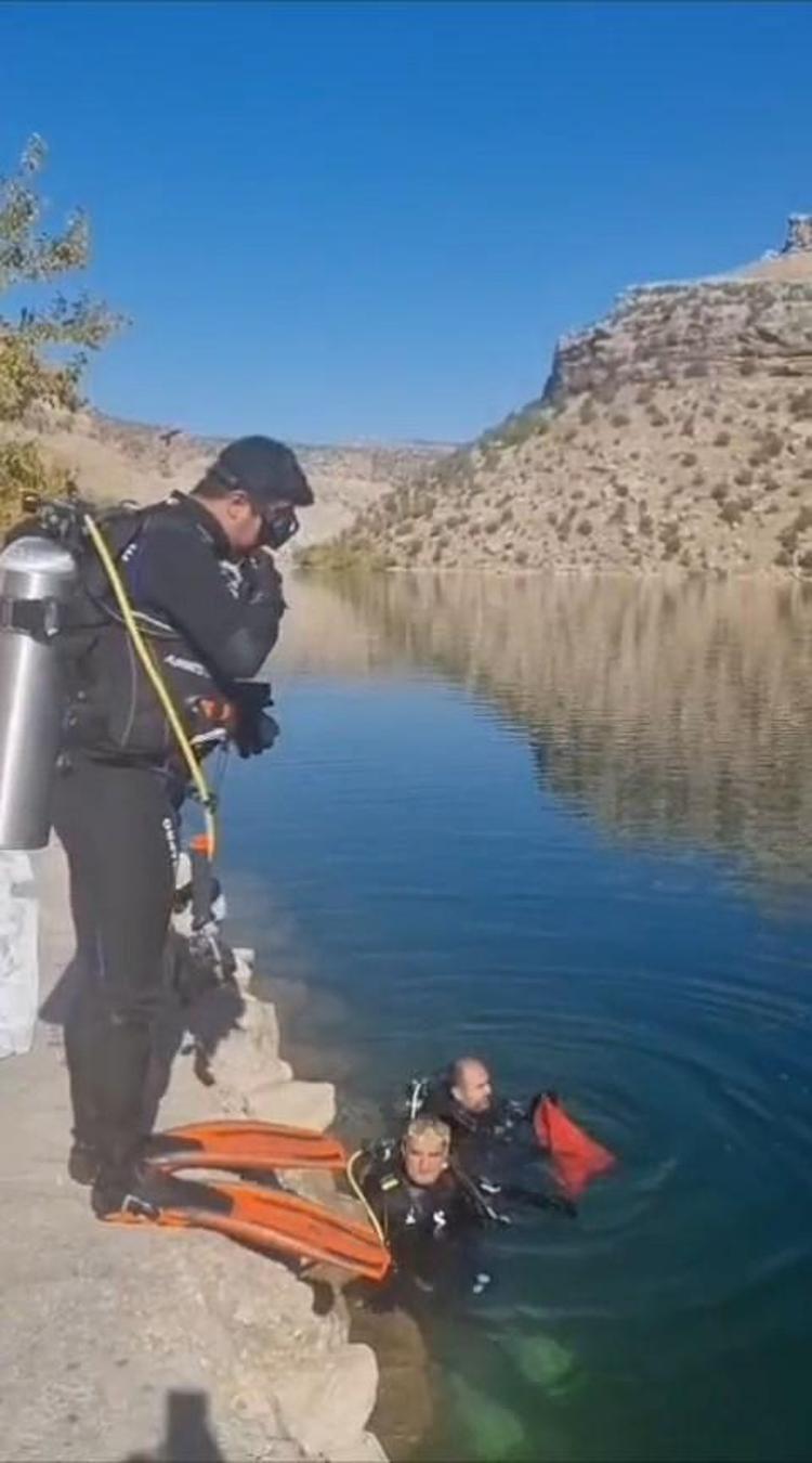 Eğil Baraj Gölü'ne eğitim amacıyla bugün dalış yapan Büyükşehir Belediyesi İtfaiye Daire Başkanlığı su altı arama-kurtarma ekibi, su altında çöplerin yanı sıra 'büyü' için kullanıldığı değerlendirilen; aralarında at nalı, üzerinde Arapça yazılar bulunan malzemelerle karşılaştı.