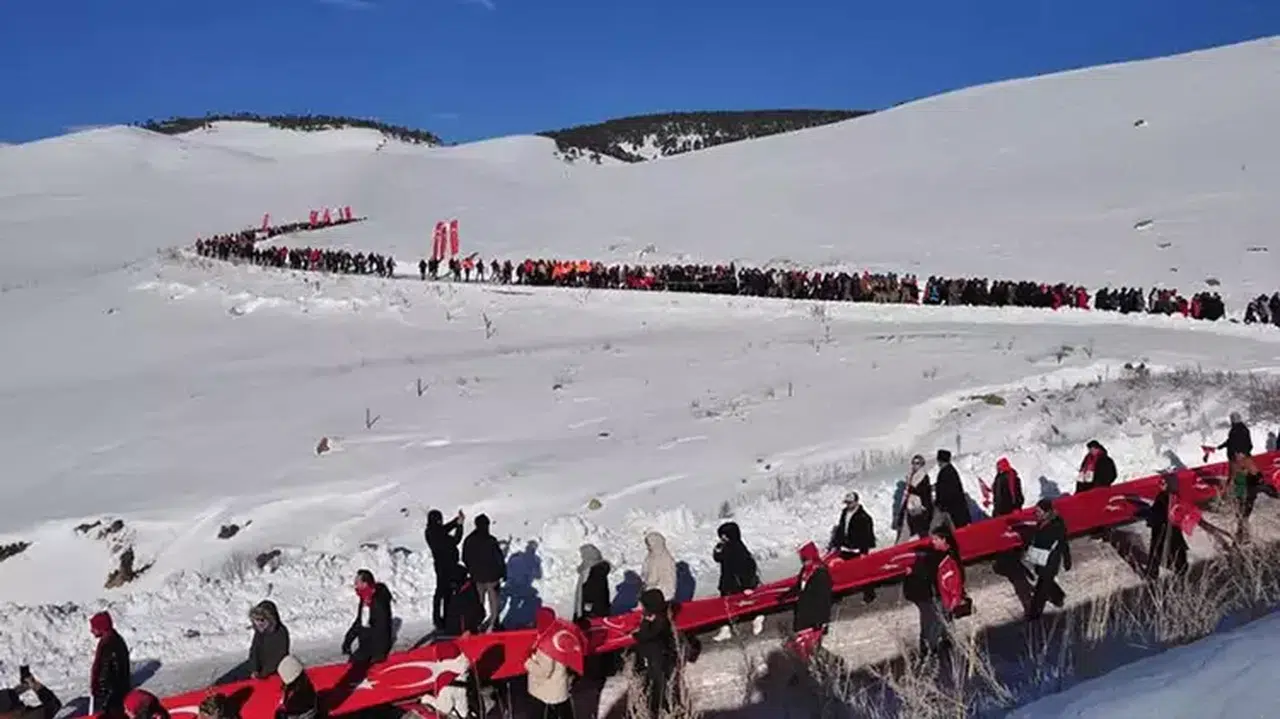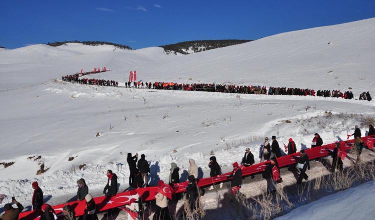 Yürüyüşe katılan Güler Aslan (70), “Şehitlerimize canımız feda. Büyüklerimizin anlattığına göre dondurucu soğuk ve tipi nedeniyle Mehmetçiğimiz bu topraklarda şehit oldu. Biz de onları yad ediyoruz” dedi.
