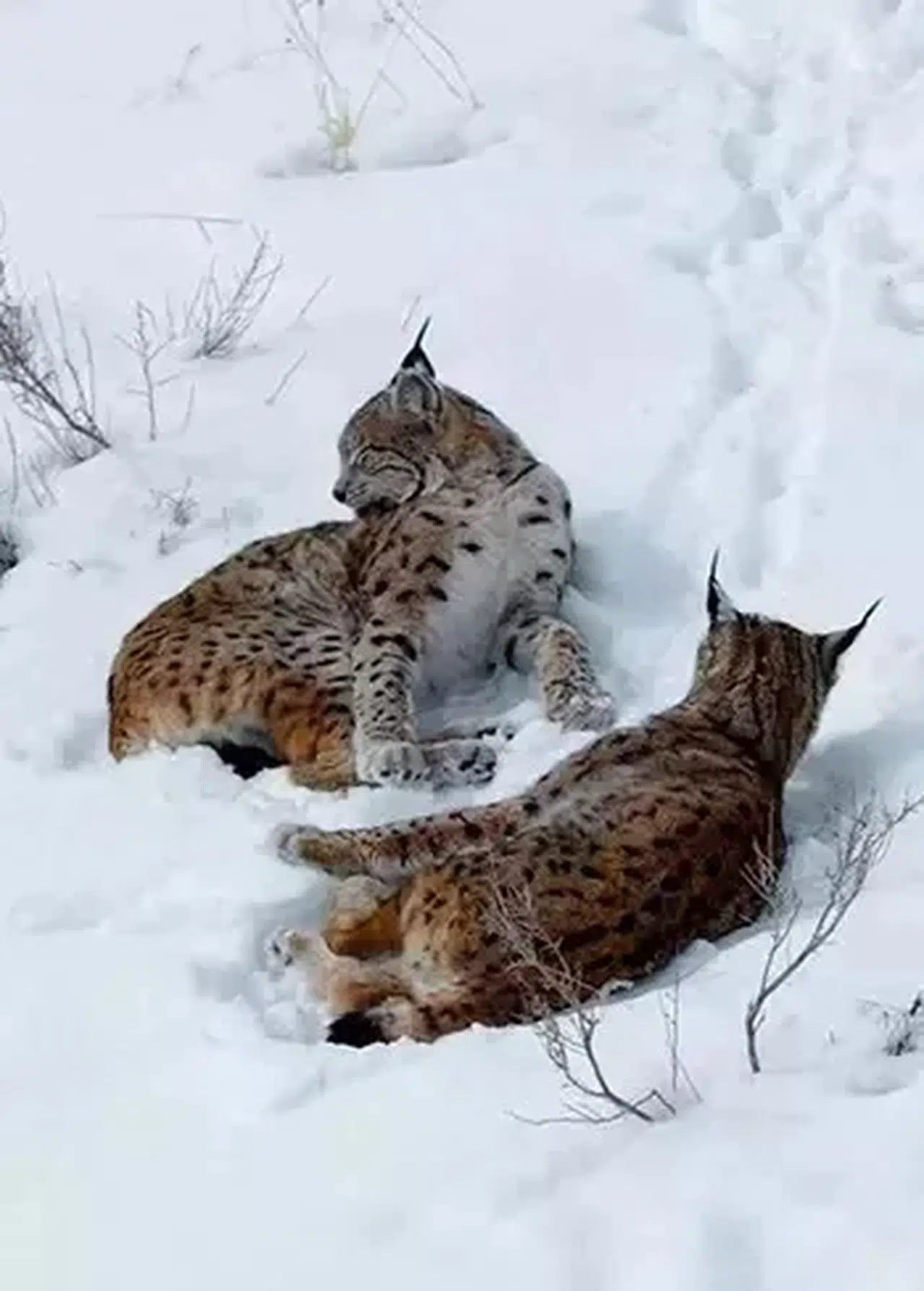 Keşiş Dağları’nda dron kamerasıyla görüntü çeken Mustafa Başgöze, karlı arazide 2 vaşağı kayda aldı. Başgöze, Dünya Doğa ve Doğal Kaynakları Koruma Birliği (IUCN) kırmızı listesinde yer alan vaşak ailesinin 2 üyesinin görüntülerini, sanal medya hesabından paylaştı. Görüntüler, büyük ilgi gördü.