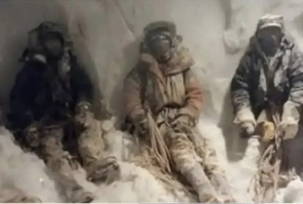 Üç dağcı, yan yana oturur halde bulundu. Sanki sadece kısa bir mola vermiş gibiydiler.