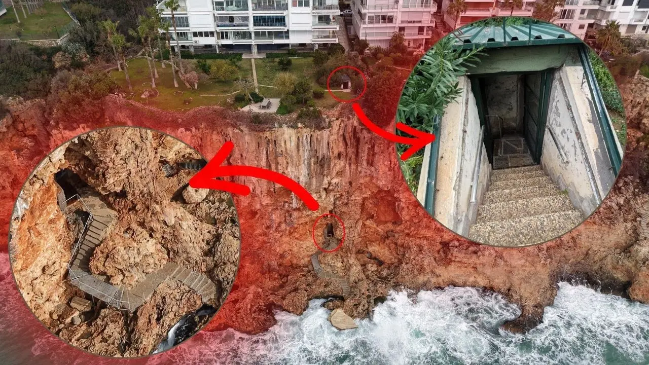 O dönem Muratpaşa Kaymakamlığı'ndan yapılan açıklamada, Konyaaltı Caddesi’nde falezler deniz kısmından kayalıklara açılan bir mağara ve mağaraya ait demir kapı üzerinde kamera olduğunun görülmesi sonrası başlatılan incelemede, mağaranın yaklaşık 40 sene önce inşa edildiği ve mağaradan denize asansör ile inilebildiğinin belirlendiği ifade edildi. Ayrıca mağaranın içerisinde merdivenin de olduğu da kaydedildi.