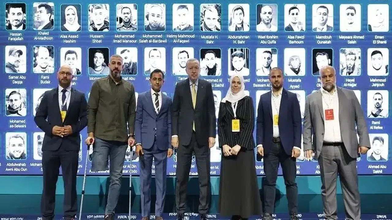 Cumhurbaşkanı Erdoğan, "Biraz evvel şehit basın mensuplarımızın vasiyetlerini hep beraber izledik. İnşallah mahşeri vicdan, Yahya Barzak’ın ve diğer 270 basın mensubunun hatırasına sahip çıkacak ve onların canları pahasına topladıkları deliller ışığında faillerinin hukuk önünde hesap vermesini sağlayacaktır. Türkiye olarak bu konuda üzerimize düşeni yapmaya hazırız. Adalet Divanı başta olmak üzere, buralarda gerekli adımlar neyse bu adımları atmaya hazırız. Biliyorsunuz, iki yıllık zulmün ardından geçtiğimiz haftalarda bizim de desteklerimizle Hamas ve İsrail arasında bir ateşkes anlaşmasına varıldı. Böylece Gazze'li kardeşlerimiz ilk defa rahat bir nefes almaya başladı. Hamas’ın anlaşmaya riayet konusunda titiz davrandığını görüyoruz. İsrail ise mutabakatı bozmak ve katliamlarına tekrar başlamak için adeta bahane arıyor, fırsat kolluyor. İşte, önceki gün yine çoğu çocuk olmak üzere yüzden fazla Gazzeli’yi şehit ettiler. İsrail’in ahde vefa konusundaki berbat sicilini herkes biliyor. Dolayısıyla ateşkesin sürmesi, insani yardımın Gazze'li kardeşlerimize ulaşması ve Gazze’nin yeniden inşası safhasına geçilmesi ancak İsrail’in tüm bunlara zorlanmasıyla mümkün olacaktır. Türkiye, Gazze’nin bir an evvel ayağa kaldırılması için sadece elini değil, tüm gövdesini taşın altına koymaya hazırdır." dedi.