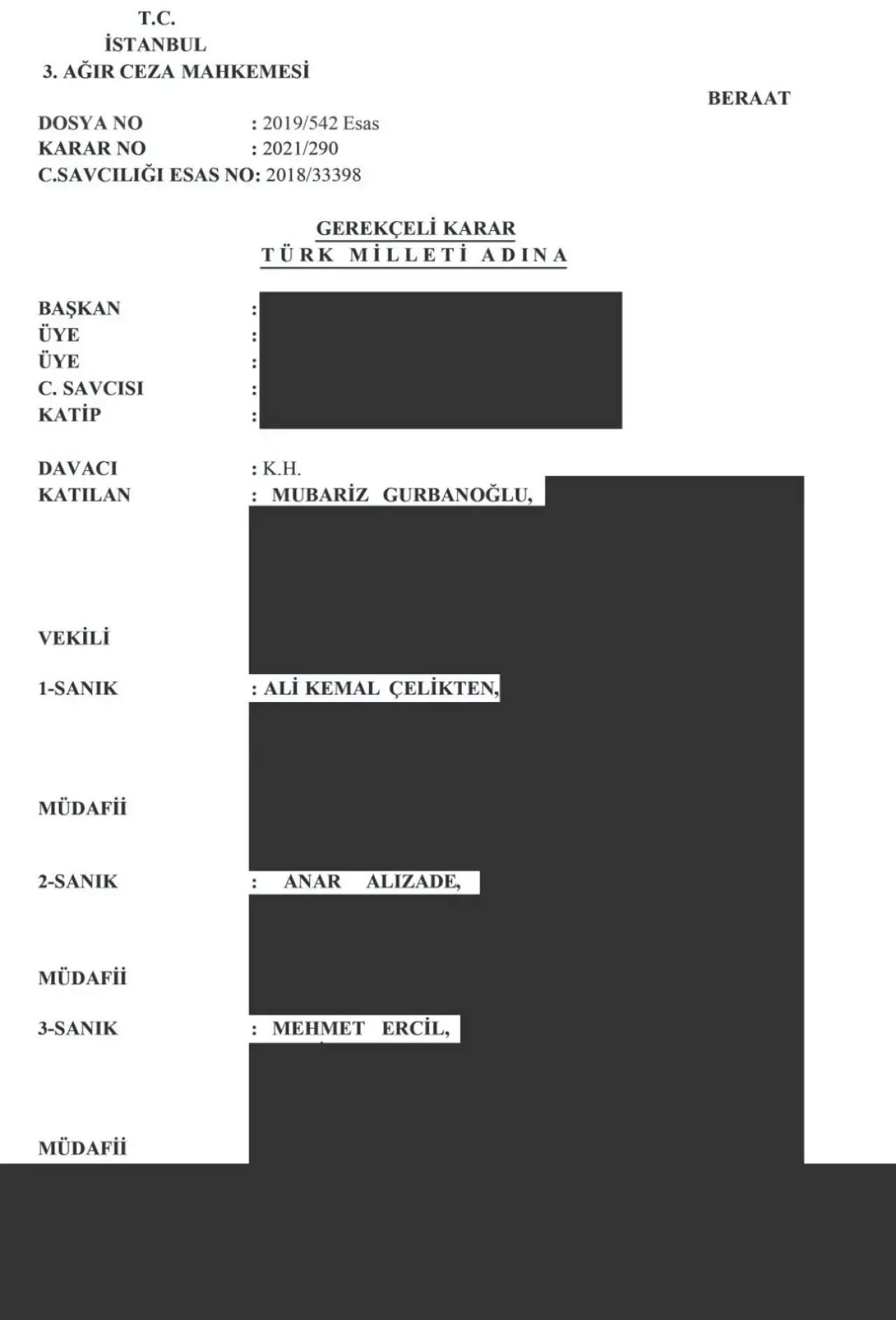 MÜBARİZ (MANSİMOV) GURBANOĞLU'NUN MESNETSİZ İDDİALARINA YARGI SON NOKTAYI KOYDU!