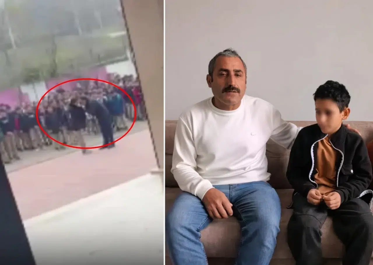 Öğrenciler bayrak töreni için okul bahçesinde sıraya girdiği sırada, okul müdürü Mustafa Ç., 6’ncı sınıf öğrencisi Muhammed Emin K. (11)’yi iddiaya göre sıra düzenini bozduğu gerekçesiyle yanına çağırdı.