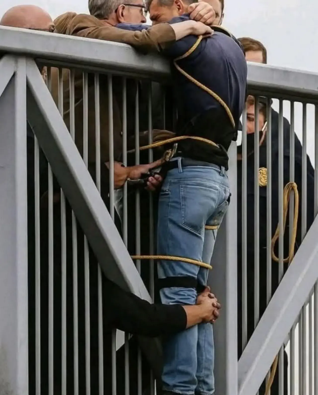 Daha önce hiç tanışmamış insanlar olabildiğince hızlı bir şekilde ona doğru uzandılar. Biri kemerine, diğeri kıyafetlerine, bir başkası da bacaklarına yapıştı. Büyük konuşmalar yoktu, tereddüt yoktu; sadece bırakmayı reddeden eller vardı. Neredeyse bir saat boyunca onunla kaldılar, onu desteklediler ve onunla konuştular. Kusursuz kelimelerle değil, böyle anlarda önemli olan tek şeyle: Yalnız değilsin. Biraz daha bizimle kal. Nefes almaya devam et. Kaybedilmiş bir savaş son değildir.