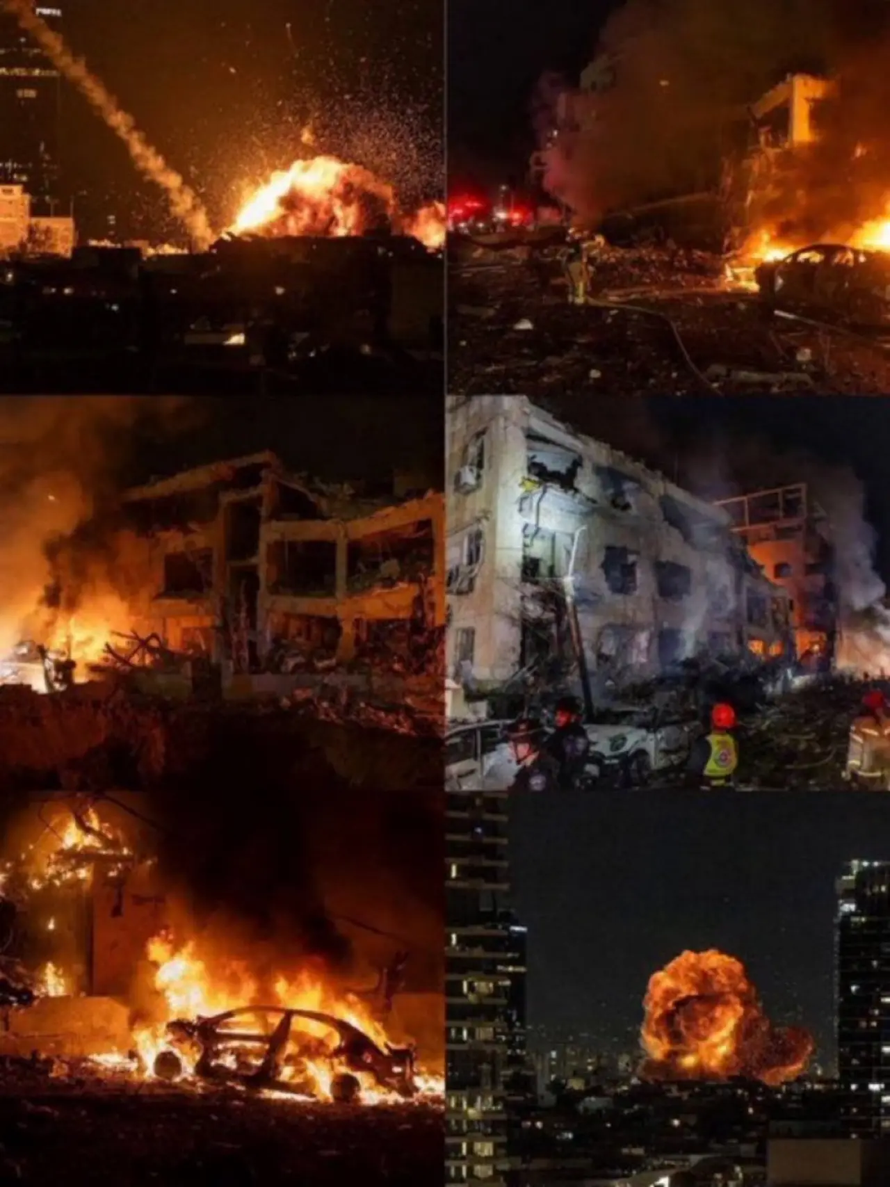 Uluslararası medya ve sosyal medyaya yansıyan görüntülerde özellikle Tel Aviv’in bazı bölgelerinde yüksek katlı binaların ağır hasar aldığı, bazı yapıların tamamen çöktüğü ve çok sayıda noktada yangın çıktığı görülüyor.