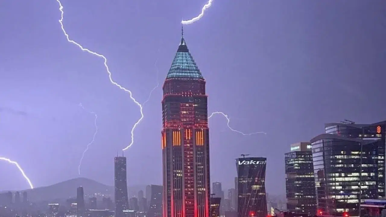 İSTANBUL'da akşam saatlerinde etkili olan gök gürültülü sağanak yağış nedeniyle, Ümraniye'de Finans Merkezi'ndeki bir binaya yıldırım düştü. O anlar cep telefonu kamerasıyla kaydedildi. İstanbul genelinde akşam saatlerinde gök gürültülü sağanak yağış etkili oldu. Ümraniye'de Finans Merkezi'ndeki bir binaya yıldırım düştü. O anlar cep telefonuyla kaydedildi.