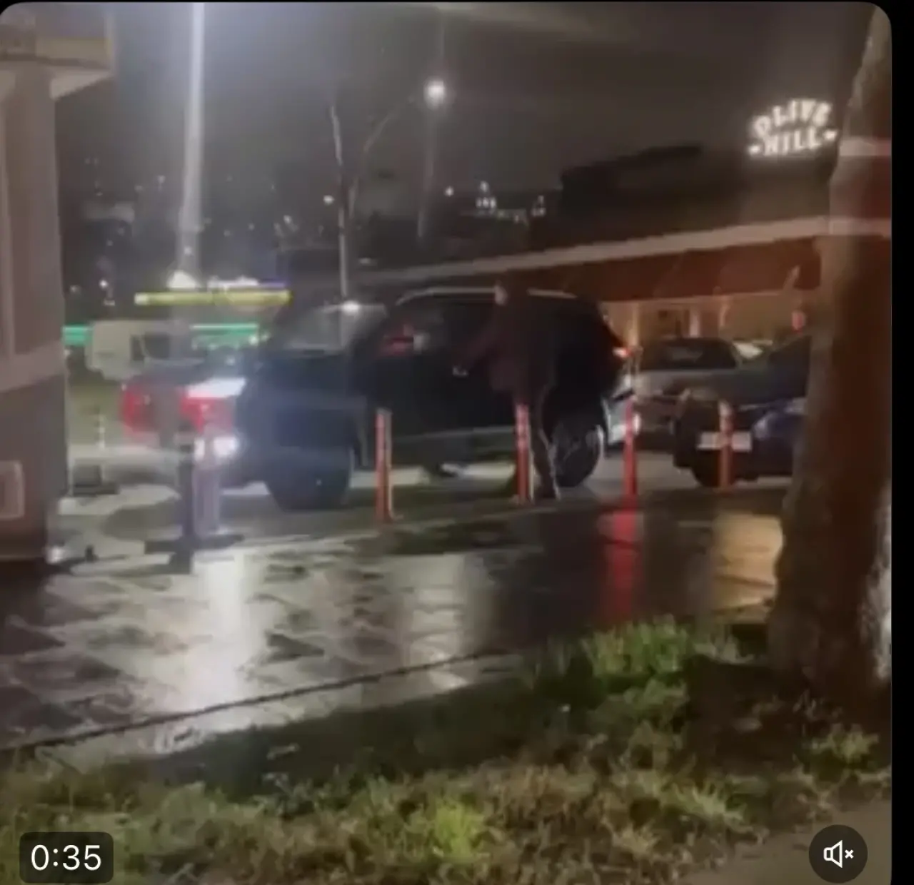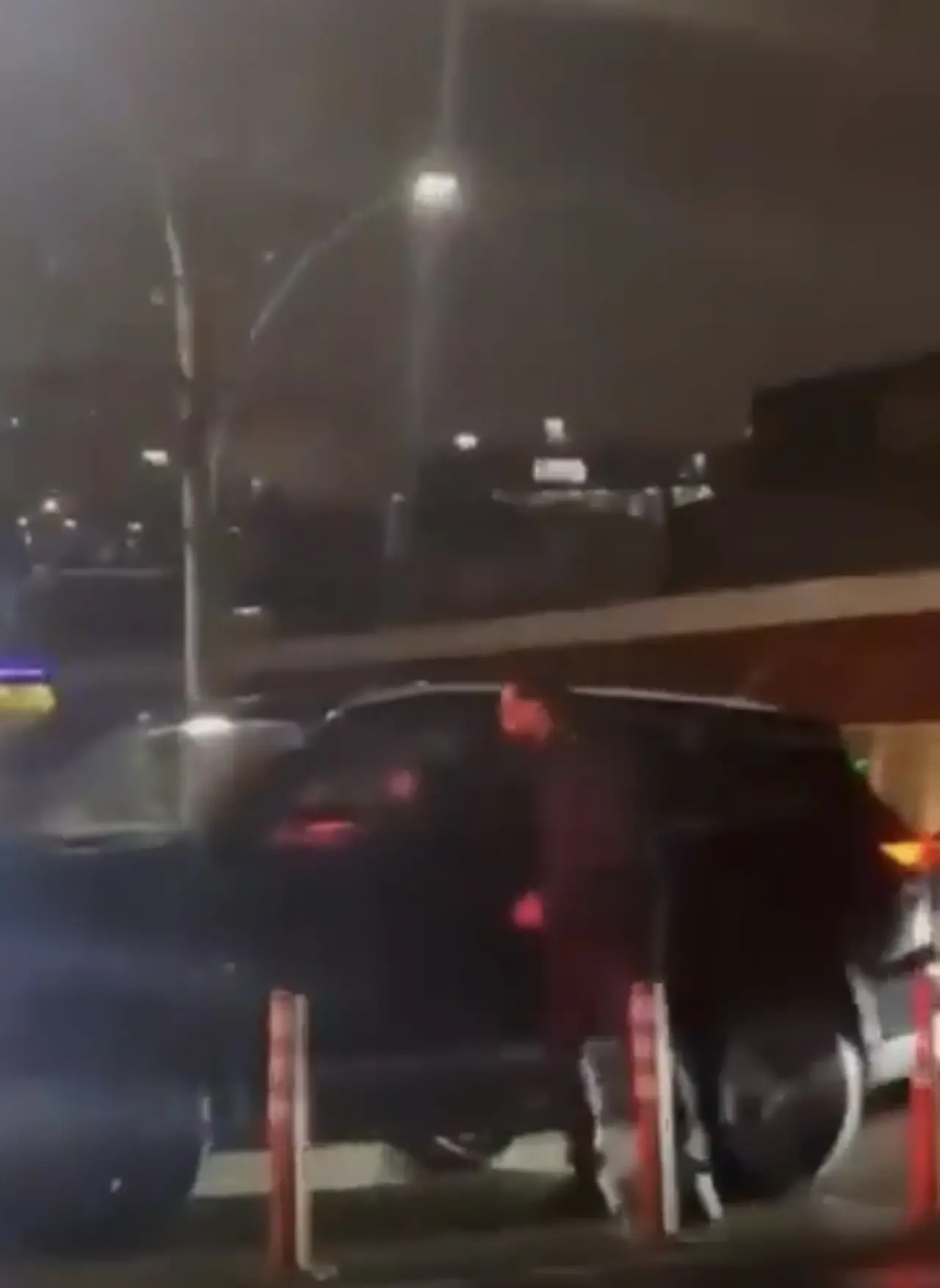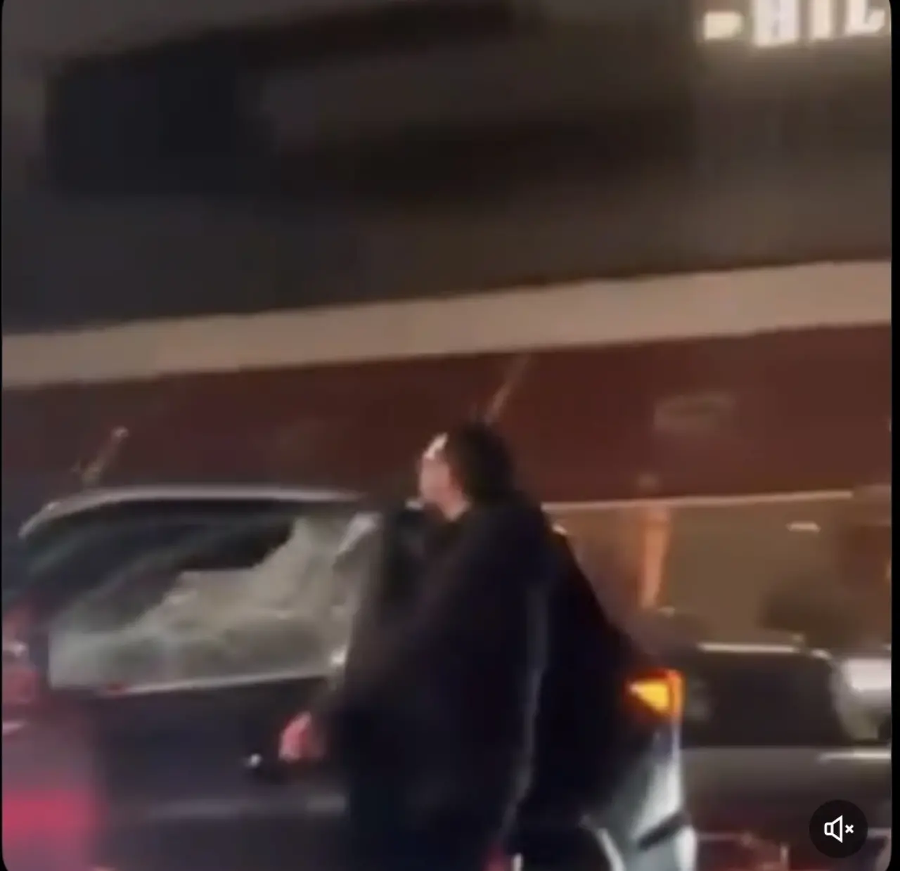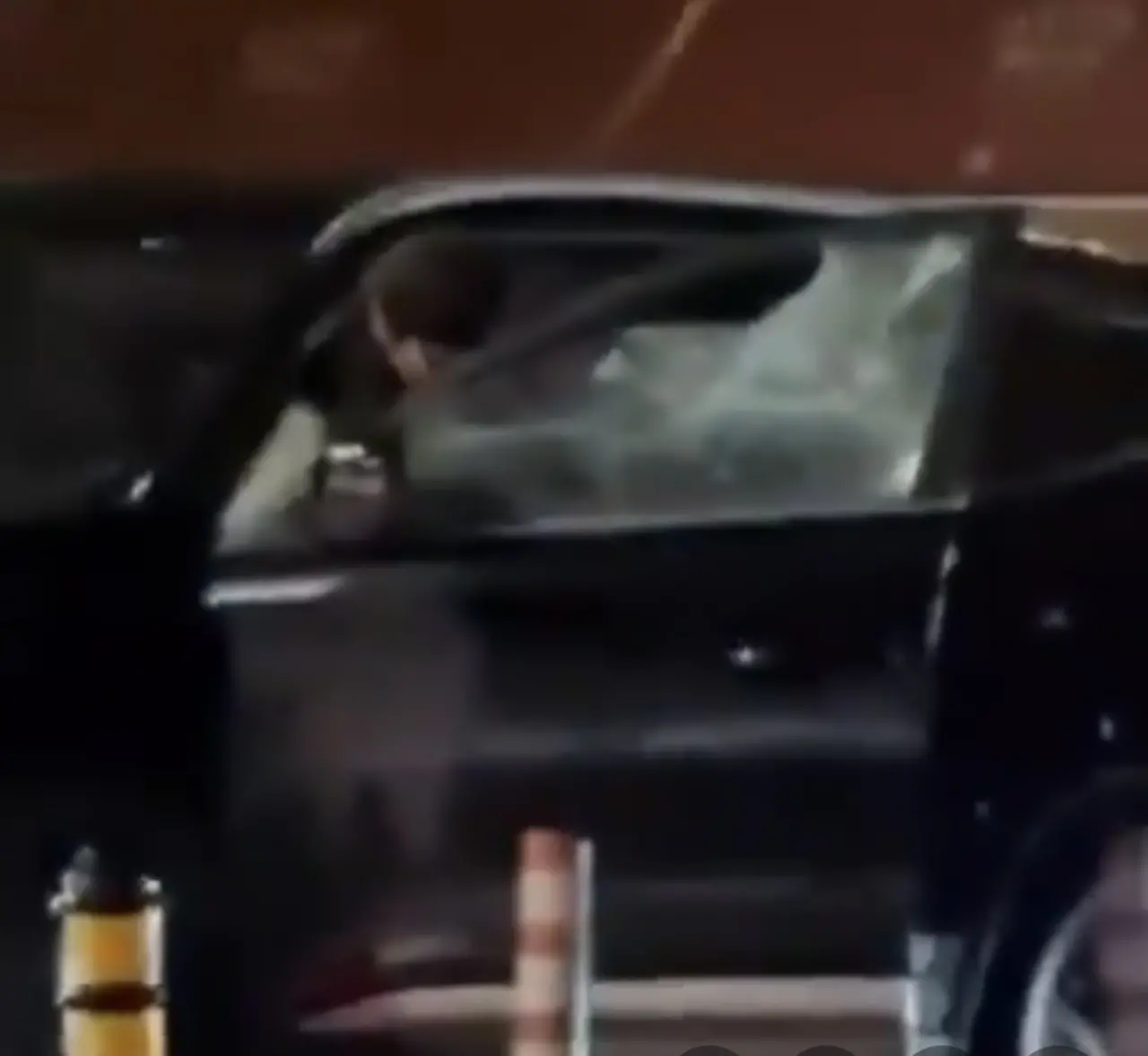 Camı kıran erkek şahıs,daha sonra kırdığı cam parçalarını dışarı atıyor.Aynı şahıs ardından sağ elini içeriye uzatarak kapıyı açıyor ve şoför mahallinde bulunan kadına bir şeyler söylüyor.