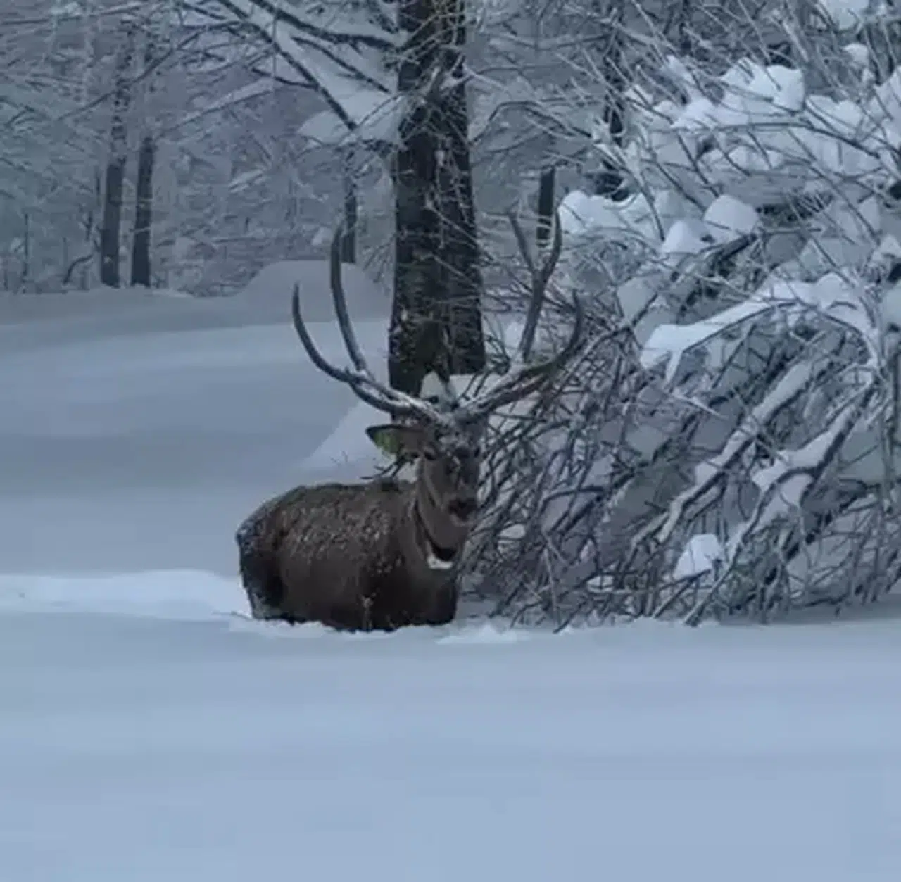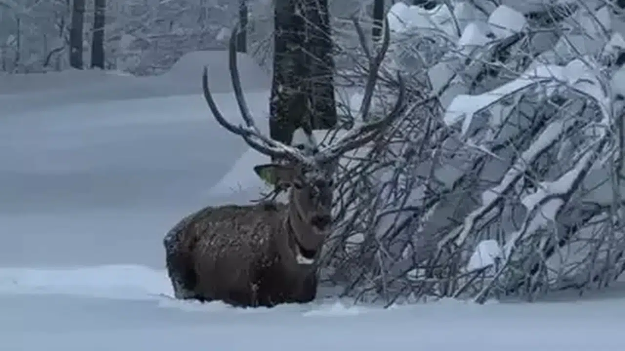 Karla kaplı Kuzuyayla Tabiat Parkında kızılgeyik kamerada