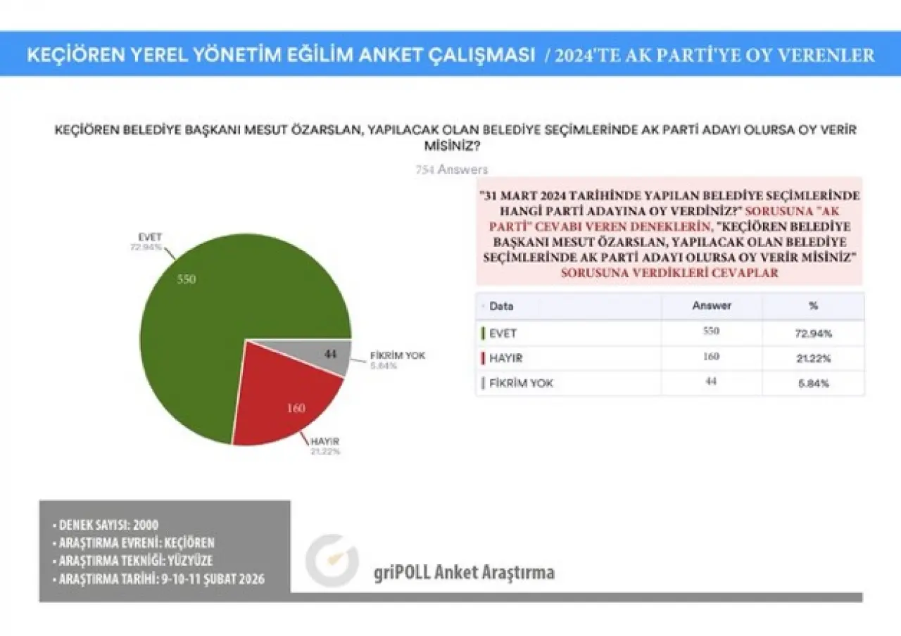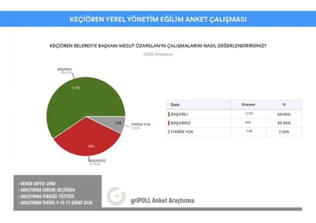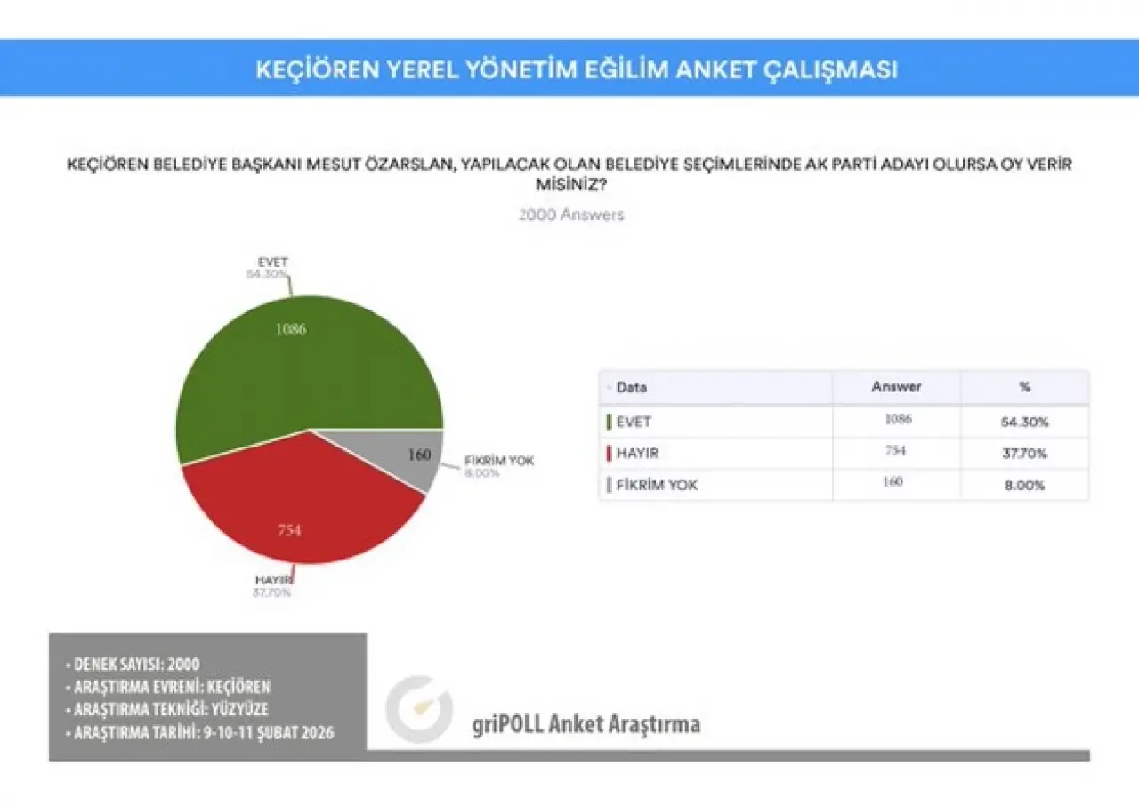 griPOLL Anket Araştırma ekiplerinin Keçiören’in nabzını tuttuğu anket çalışması sonuçları açıklandı.