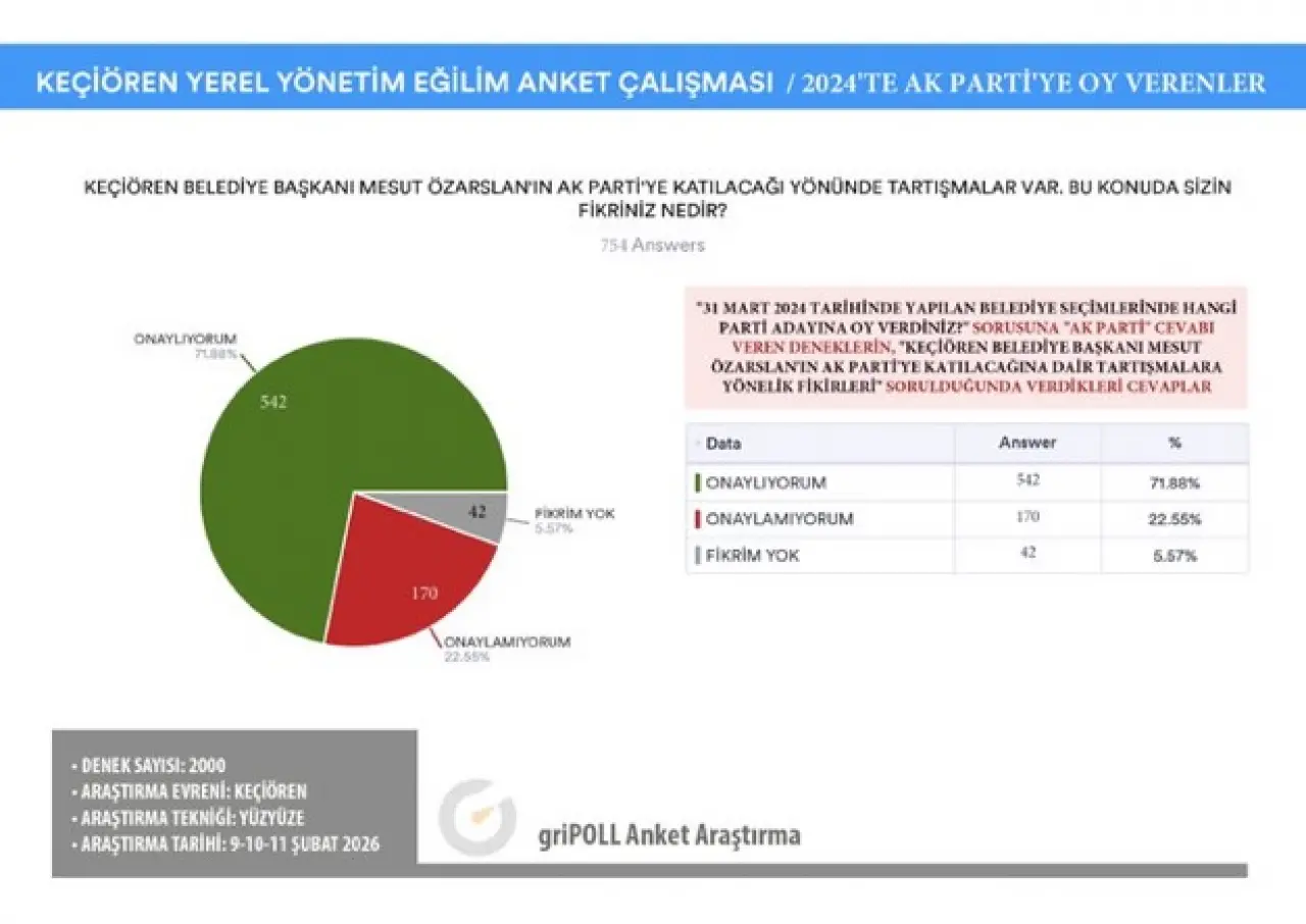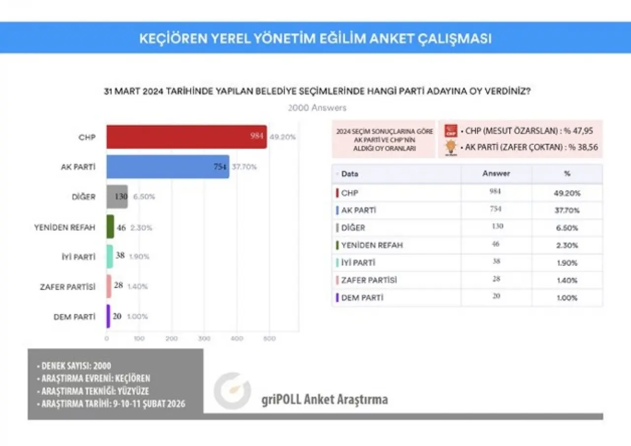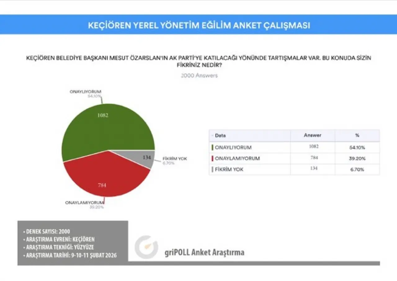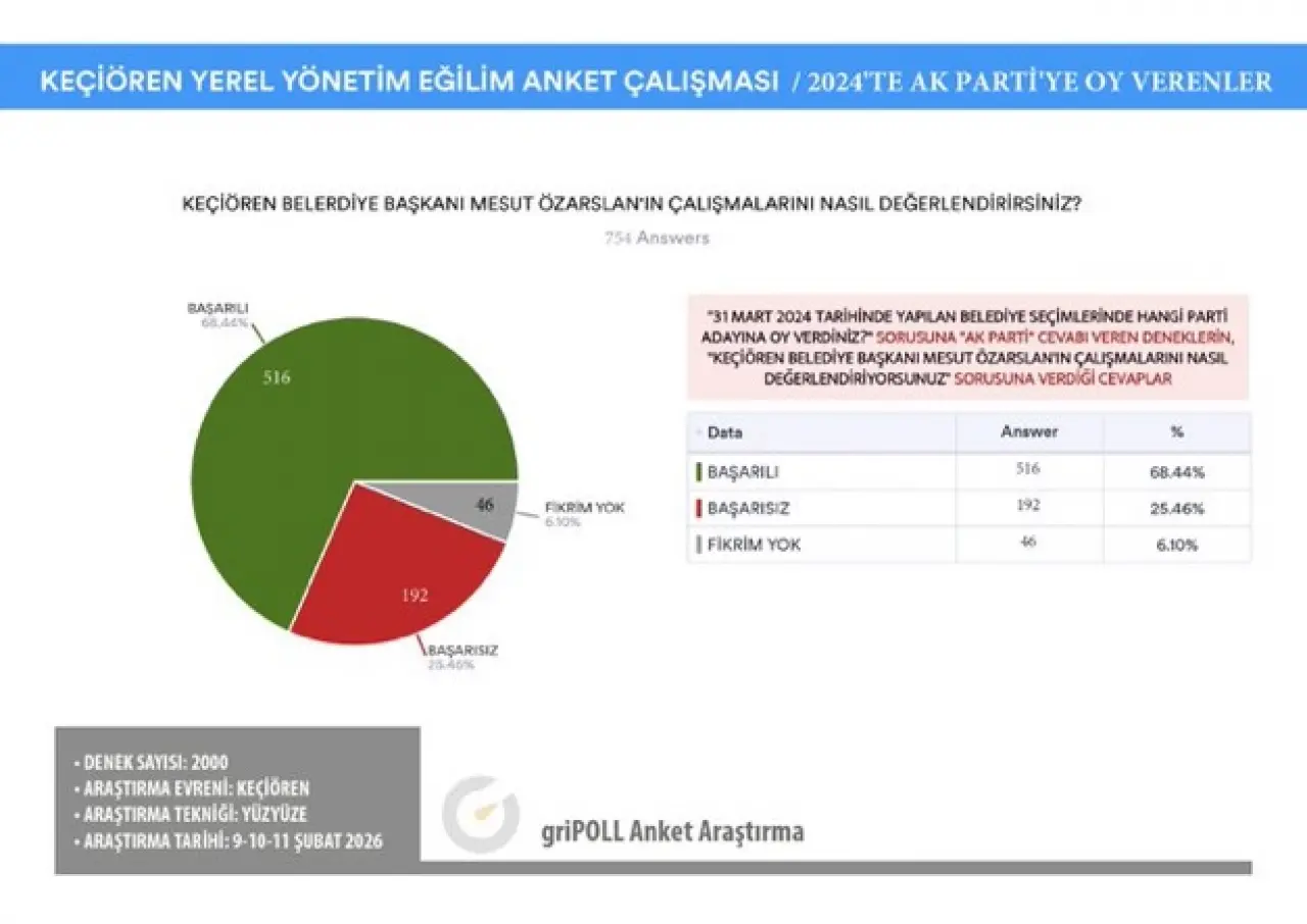 griPOLL Anket Araştırma ekiplerinin Keçiören’in nabzını tuttuğu anket çalışması sonuçları açıklandı.