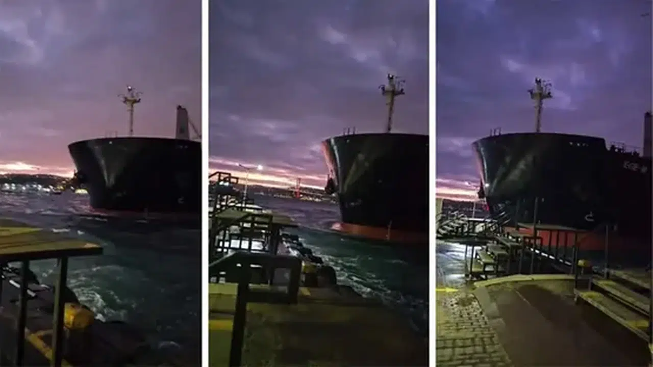 Beşiktaş'ta bulunan vapur iskelelerine doğru sürüklenen gemiyi görenler panikle kaçtı.