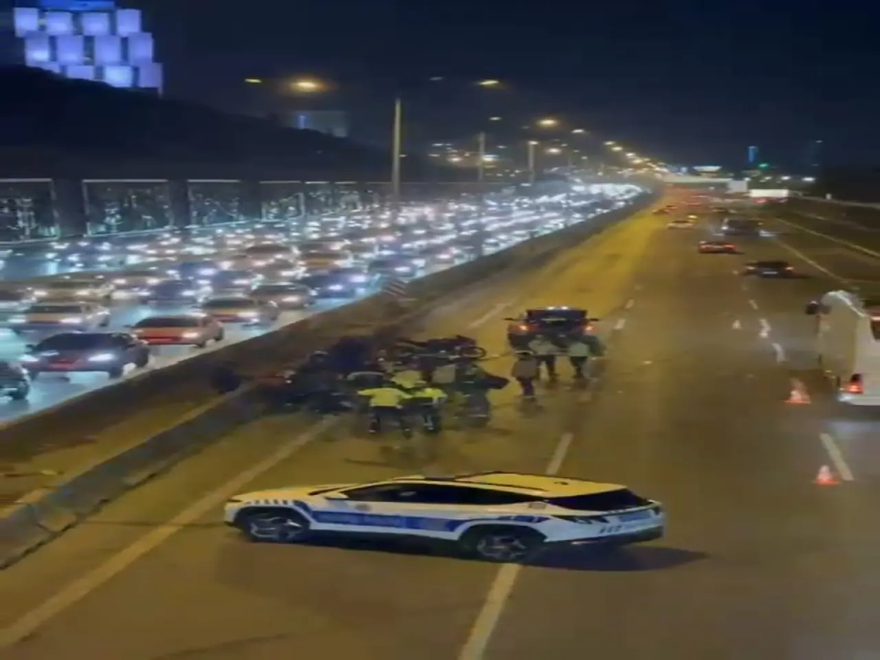 Maltepe, D-100 Karayolu'nda kazaya müdahale eden trafik polisine, yolu trafiğe kapattığı sırada sol şeritten hızla gelen motosiklet çarptı. Kazaya yardım etmek için karşı şeritte duran motosiklete de arkadan gelen başka bir motosiklet çarptı. Peş peşe yaşanan kazalar kameraya yansıdı.