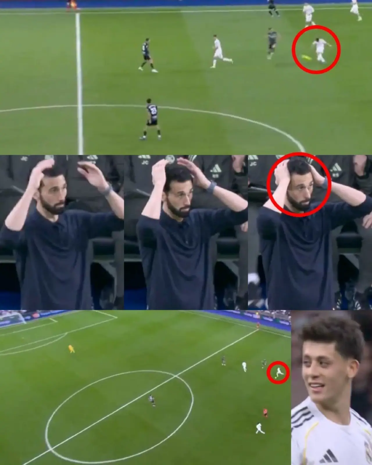 Golü izlediği anda şaşkınlıkla ellerini başına götüren Arbeloa, genç oyuncunun orta sahanın gerisinden attığı gole inanmakta zorlandı. Yüz ifadesi, tribünlerdeki ve kulübedeki şaşkınlığı adeta özetledi.