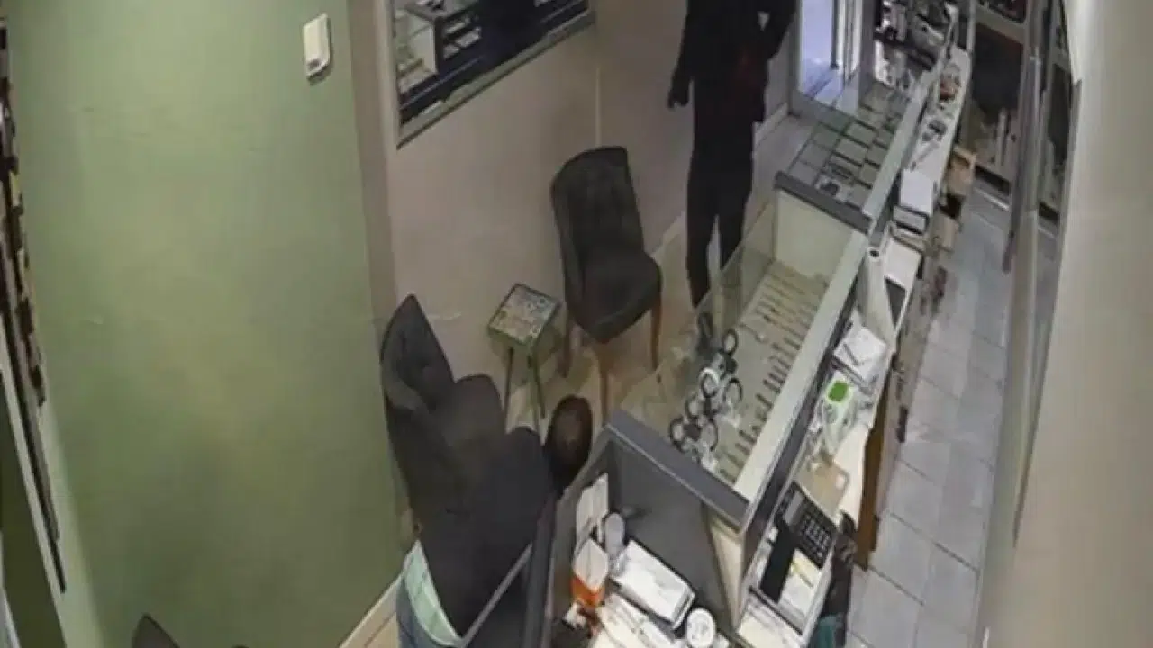 Ordu’nun Fatsa ilçesinde başında kask olan tabancalı soyguncunun, kuyumcu dükkanını soyma anları, iş yerinin güvenlik kamerasına yansıdı.