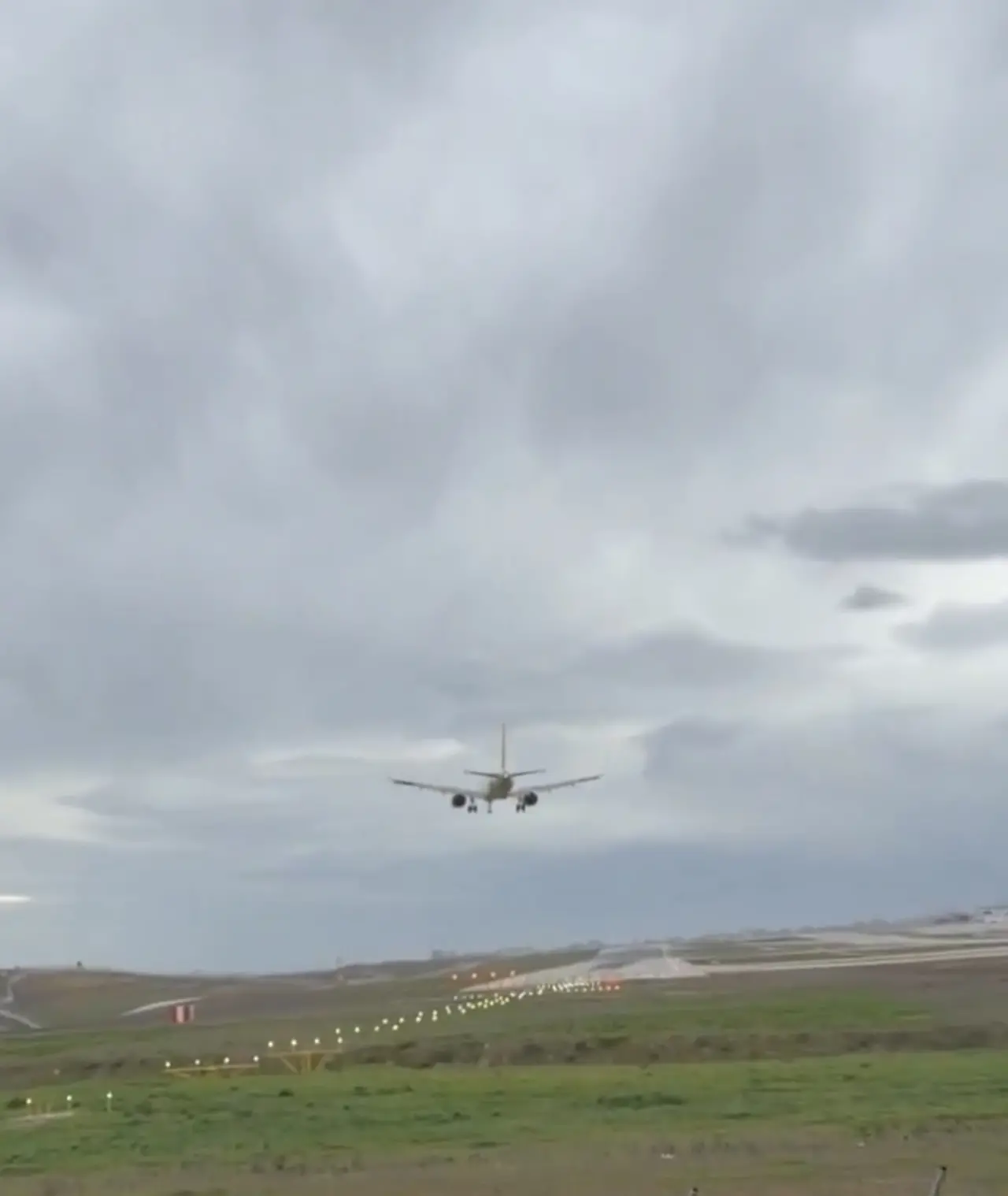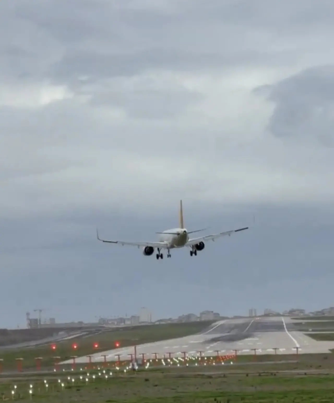 Sabihe Gökçen'e iniş yapmak için alçalan bir uçak, şiddetli fırtına sebebiyle pisti pas geçmek zorunda kaldı.