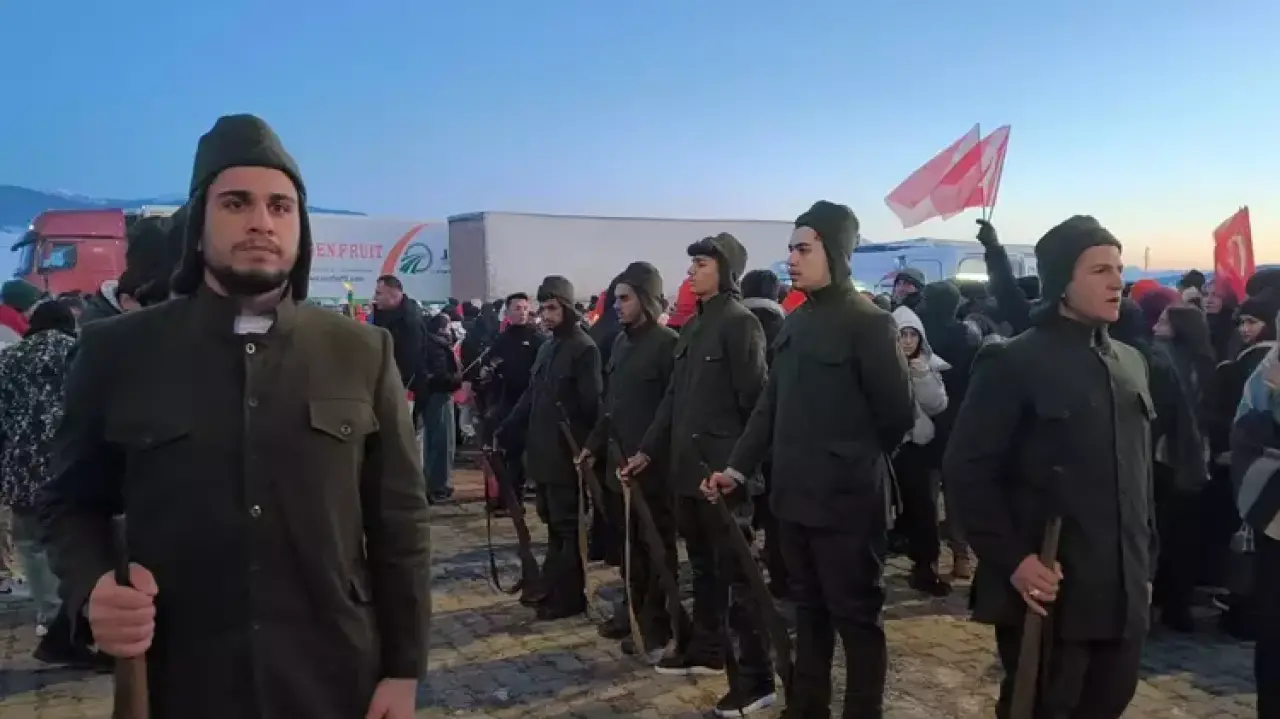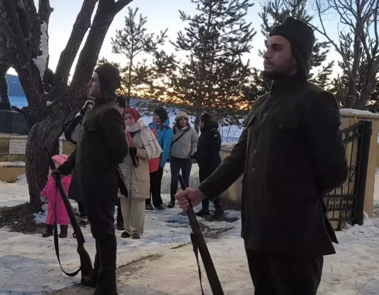 Kafkas Üniversitesi (KAÜ) Sarıkamış Meslek Yüksek Okulu önünde toplanan öğrenciler ve protokol üyeleri ellerinde Türk bayraklarıyla Alisofu Şehitlik Anıtı'na yürüdü. Yaklaşık 4 kilometrelik yürüyüşe katılanlar şehitlikte saygı duruşunda bulundu ve İstiklal Marşı okudu. O dönemde yaşanılan zorlukları hissetmek adına asker kıyafeti giyen öğrenciler, değişimli olarak temsili saygı nöbeti tutarak, nöbet değişimi gerçekleştirdi. Hava sıcaklığının sıfırın altında 10 derece olduğu ilçede düzenlenen tören Kur’an-ı Kerim tilaveti ve duaların ardından sona erdi.