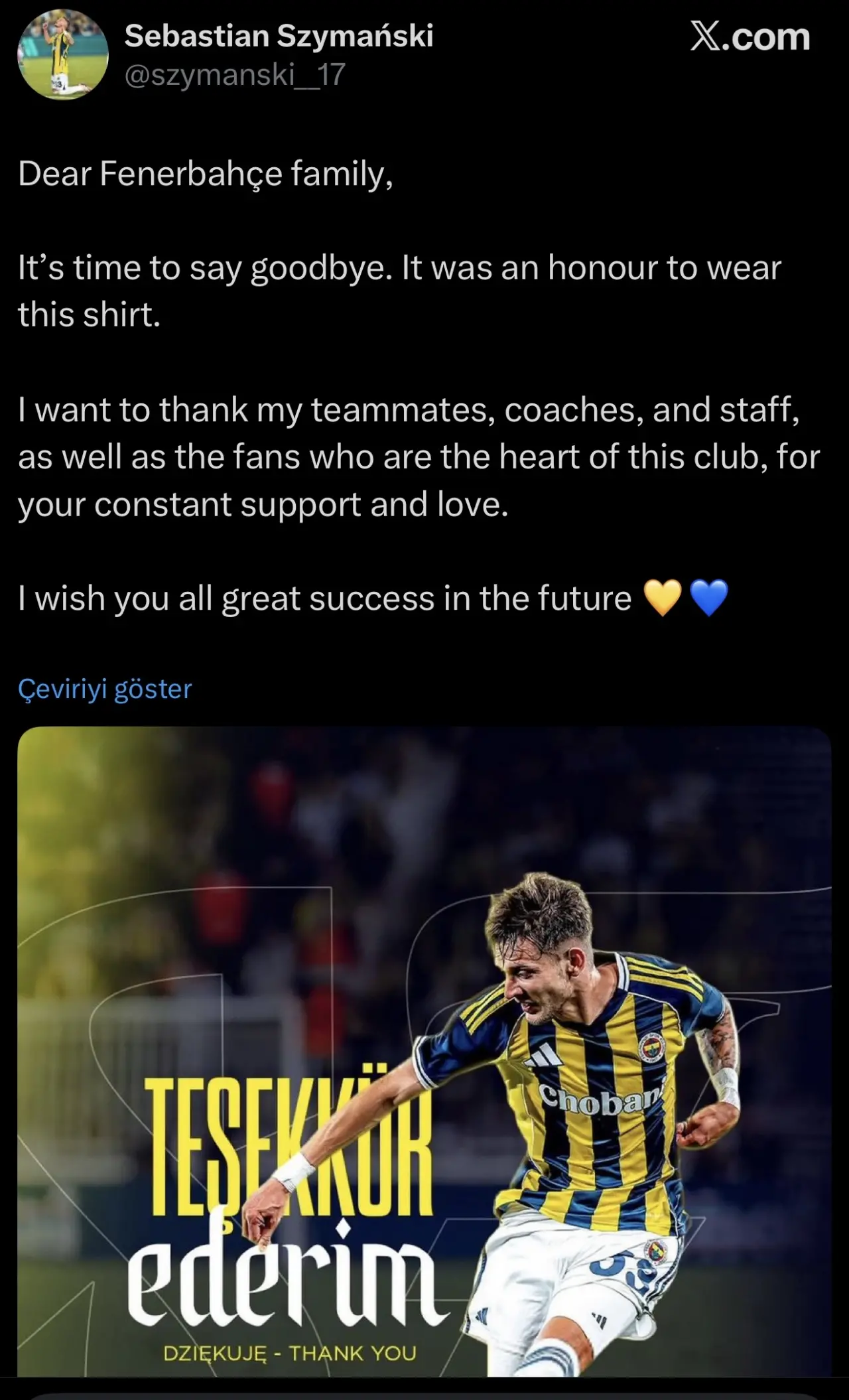 İşte Sebastian Szymanski'nin veda mesajı;