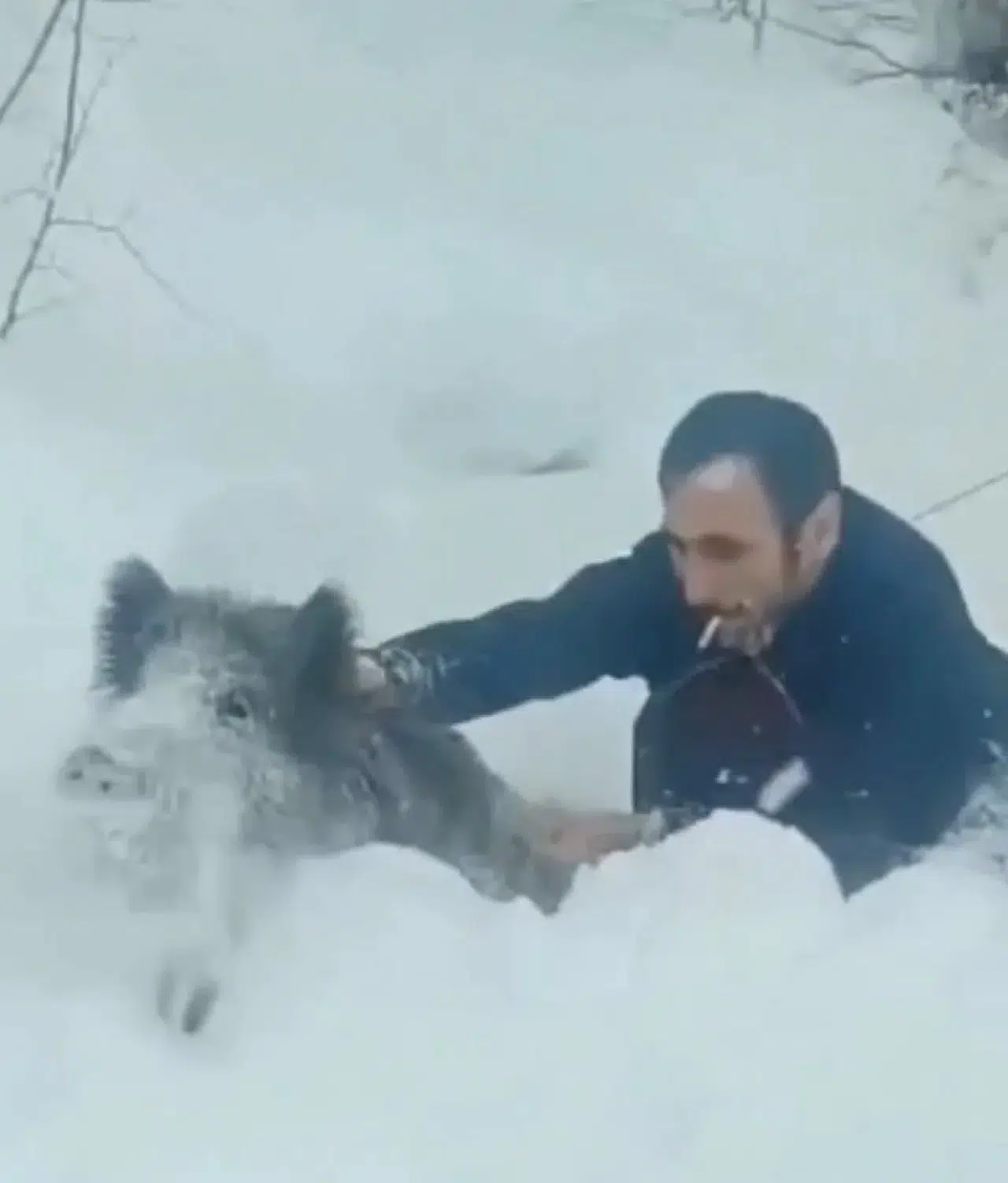Sinop'un Erfelek ilçesine bağlı Avlağasökü köyünde domuz sürüsüyle karşılaşan Şenel Yılmaz isimli vatandaş, aracından inerek bir domuzu elleriyle yakaladı.Karda kaçmaya çalışan domuzu yakalayan Yılmaz'ın ağzından sigarasını bile düşürmemesi dikkat çekti.