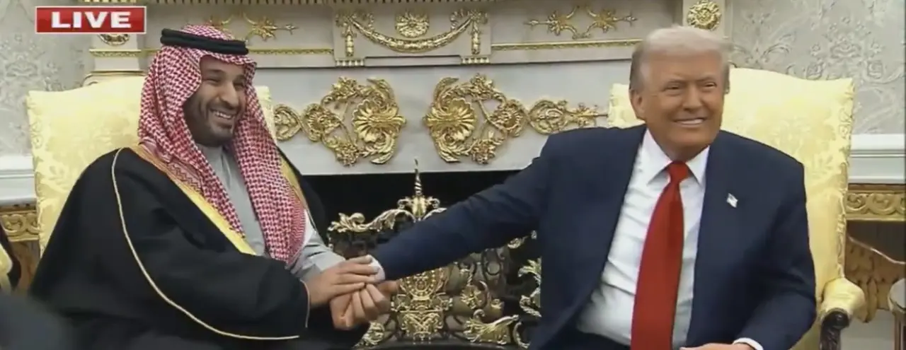TRUMP PRENS SELMAN’I İKİ ELİNİ YANA AÇARAK KARŞILADI!