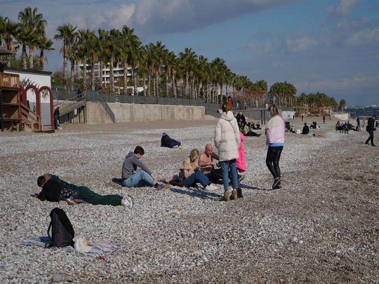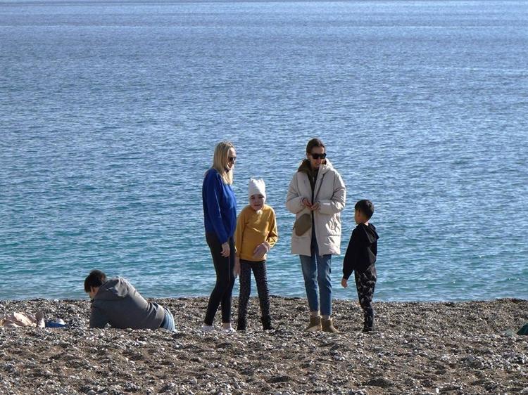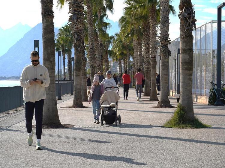 Türkiye'nin birçok bölgesinde kar ve soğuk hava etkisini sürdürürken, Antalya'da güneşli havayı fırsat bilenler, Konyaaltı Sahili'nde yoğunluk oluşturdu. Bazıları yeni yılın ilk hafta sonunda denize girerken, bazıları da sahilde yürüyüş yapıp, güneşin keyfini çıkardı.