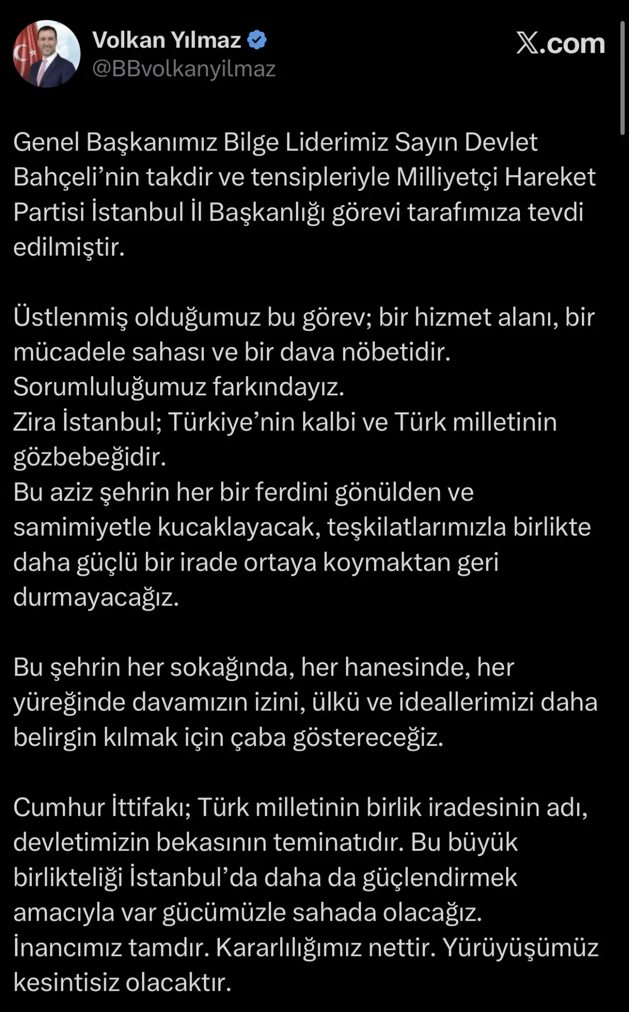 MHP, Devlet Bahçeli, Volkan Yılmaz, İstanbul İl Başkanlığı, Cumhur İttifakı, Türk siyaseti