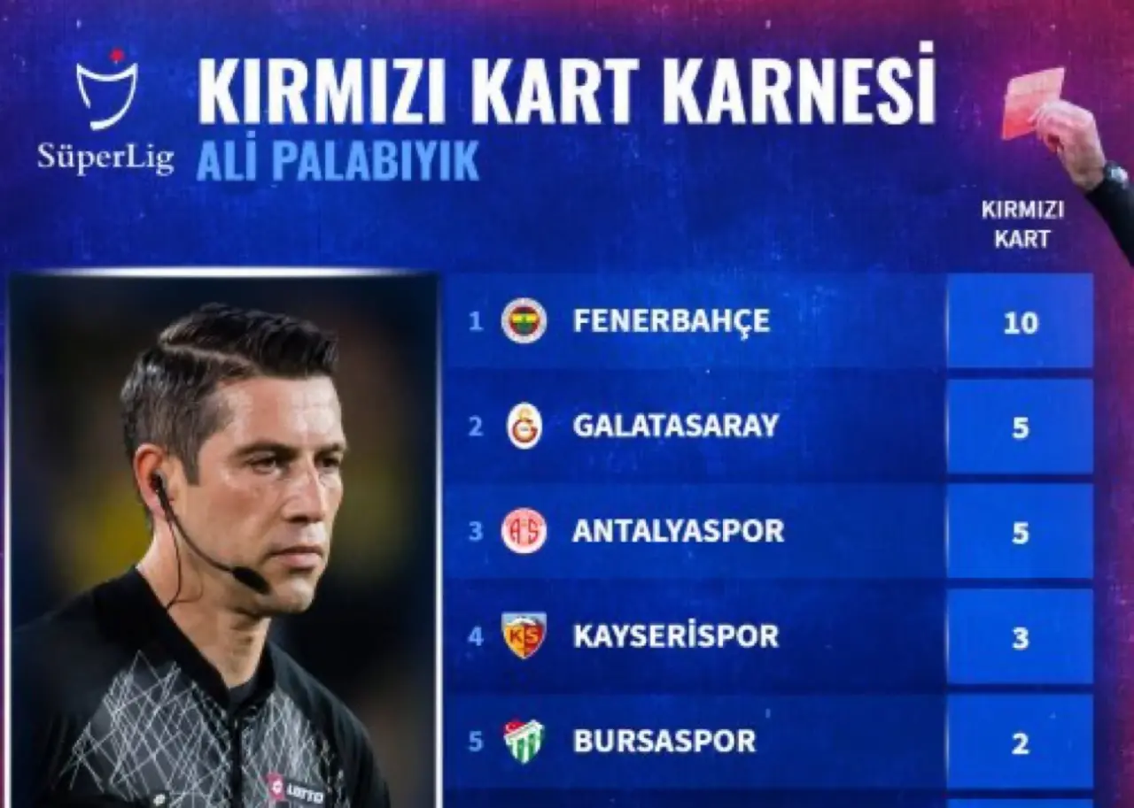 Yapılan araştırmalarda,bahis soruşturması kapsamında PFDK'ya sevk edilen Ali Palabıyık’ın hakemlik kariyeri boyunca en çok kırmızı kartı Fenerbahçe’ye gösterdiği anlaşıldı.