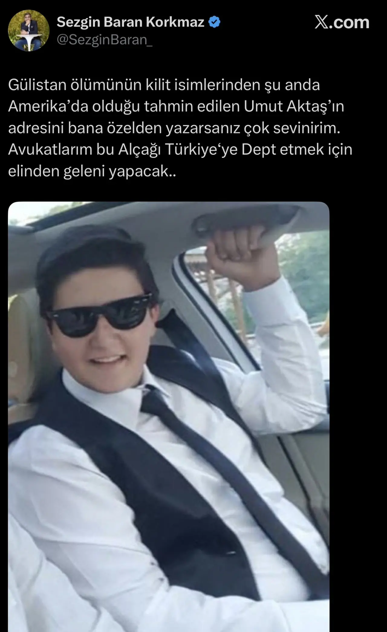 İş insanı Sezgin Baran Korkmaz’ın, X (eski Twitter) hesabı üzerinden yaptığı paylaşımlarda, Gülistan Doku olayında “kilit isimlerden biri” olduğu iddia edilen Umut Aktaş’a ilişkin açıklamalarda bulunduğu öne sürüldü.