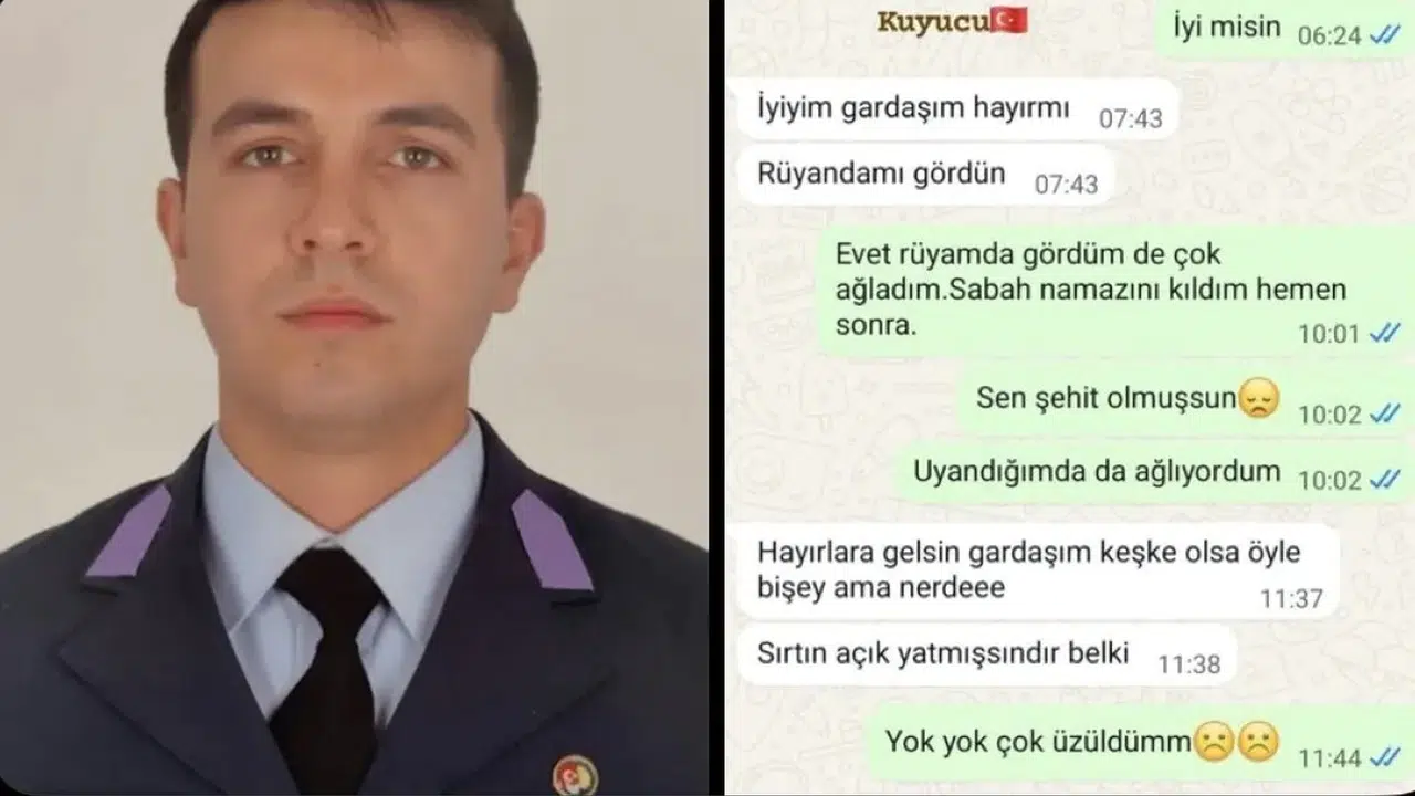 Whatsapp mesajında,şehit Kuyucu’nun ağabeyi,rüyasında kendisini n şehit olduğunu gördüğünü söylüyor.Buna karşılık şehit Ahmet Yasin Kuyucu;”Hayırlara vesile gelsin gardaşın.Keşke olsa öyle bir şey.Ama nerdeeee.” şeklinde cevap veriyor.