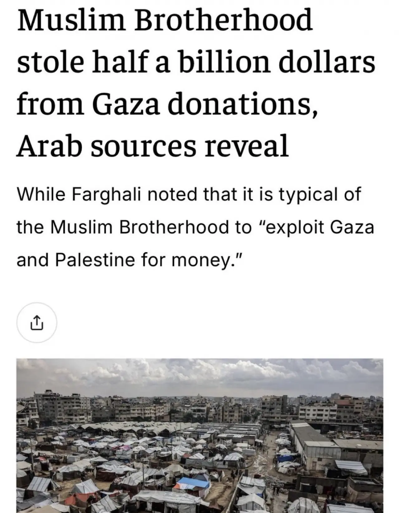 Mısırlı bir gazeteci, 12 yıldır İstanbul Fatih'de faaliyet gösteren Ümmet Vakfı isimli İhvan'a ait vakfın Gazze'ye gitmesi için bağışlanan 500 milyon doları çaldığını belgelemiş. Skandal Hamas yöneticilerinin ihbarı ile ortaya çıkmış: