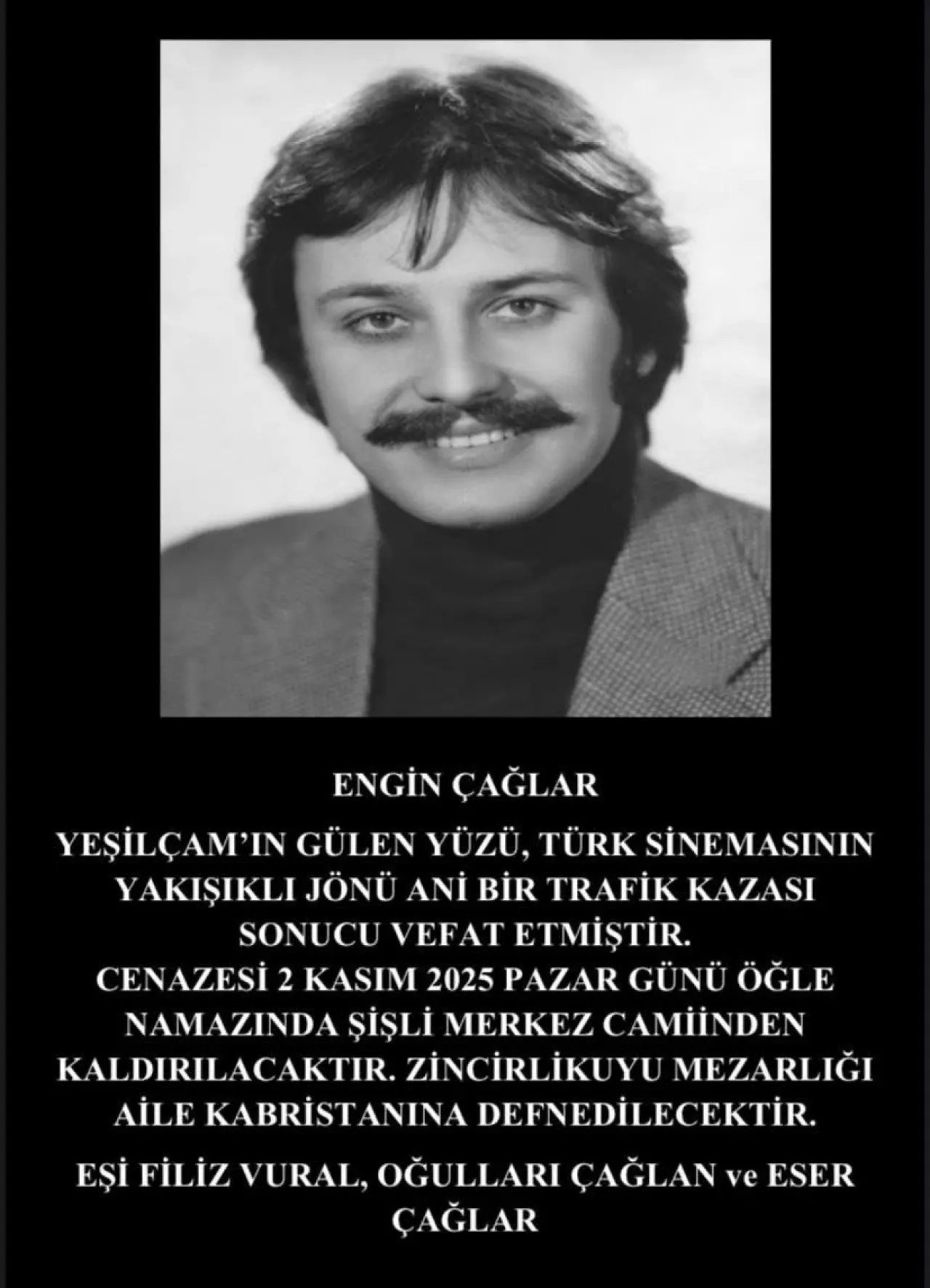 "Film-San Vakfının kurucu üyelerinden ve Türk Sineması’nın ve Yeşilçam’ın değerli oyuncusu Engin Çağlar’a Allah'tan rahmet, ailesine ve sevenlerine başsağlığı diliyoruz."