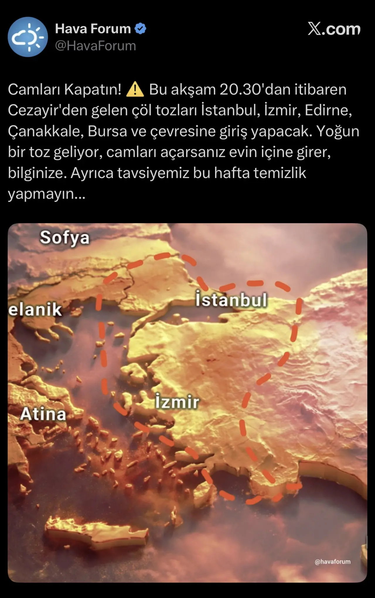 #ÇölTozu #İstanbul #HavaDurumu #SağlıkUyarısı #Çevre #TozTaşınımı