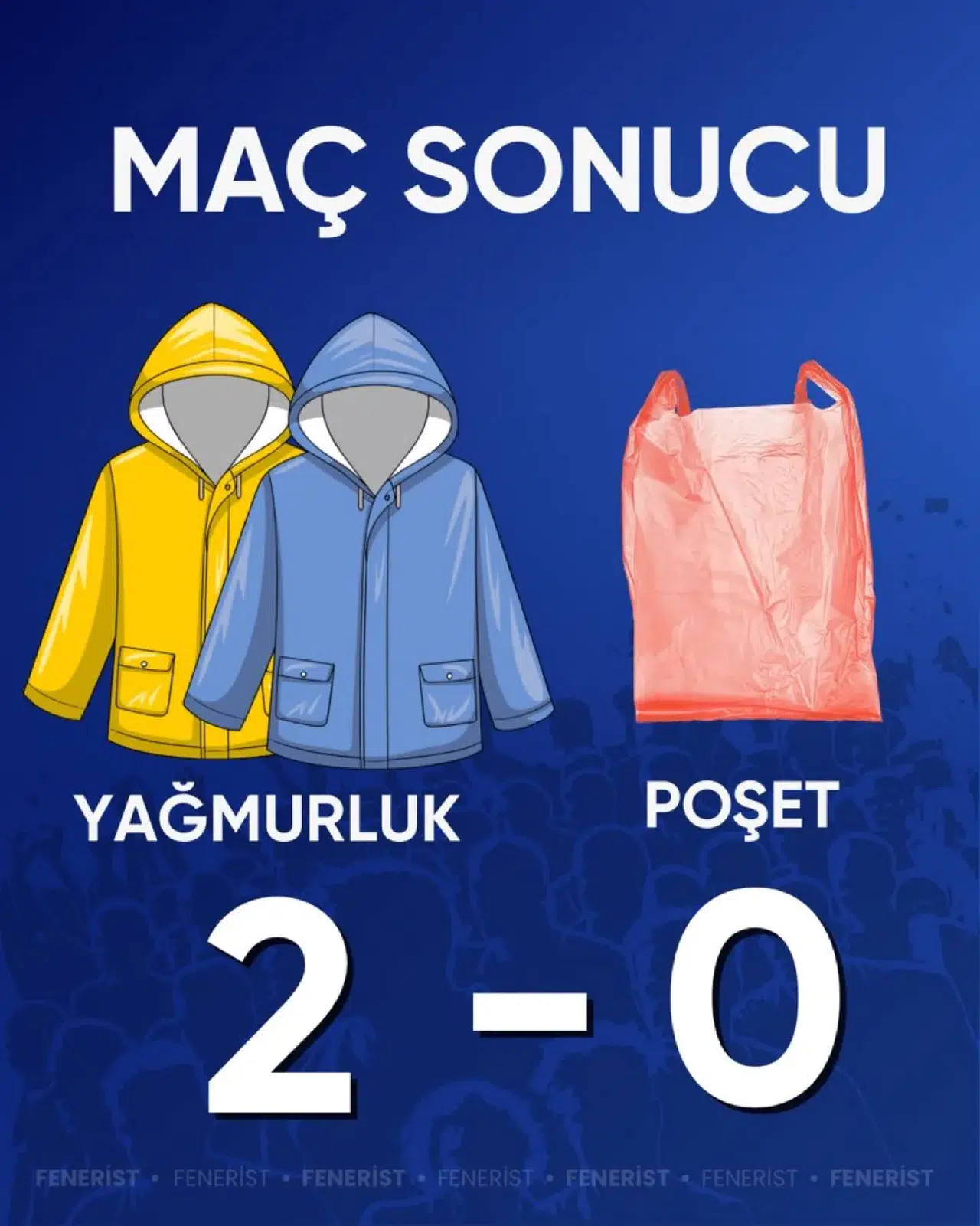 Fenerbahçe ve Galatasaray Kulüpleri’nin taraftarlarına verdiği değer, dünya gündemine oturdu. Türkiye’de de sosyal medya;”MAÇ SONUCU | Yağmurluk 2-0 Poşet” cümlesi ile sosyal medya adeta sallandı…
