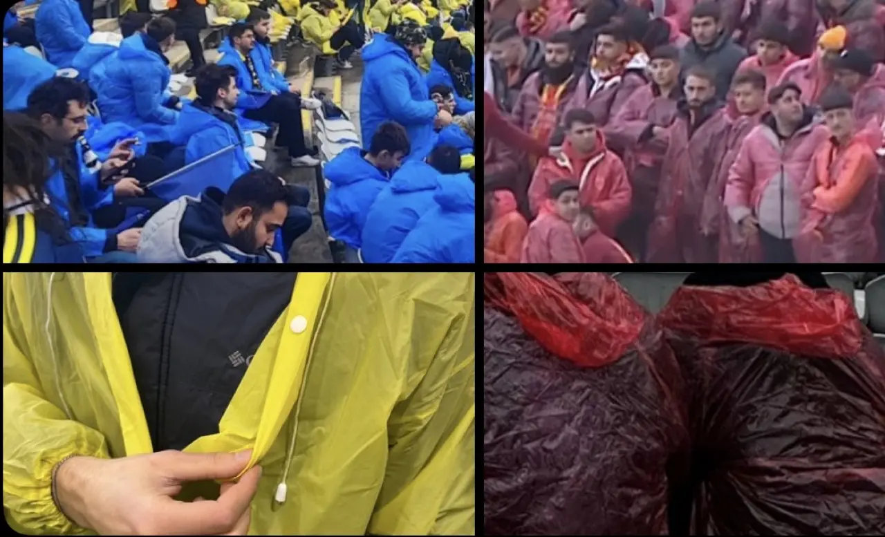 -Galatasaray taraftarına yağmurluk değil poşet dağıtmış sanki. Bir de Fenerbahçe’nin kaliteye bakın enteresan…