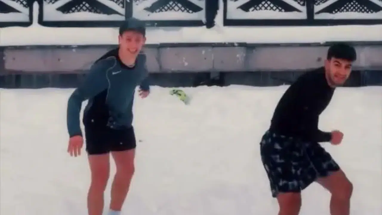 Real Madrid’in yıldız oyuncularından milli futbolcu Arda Güler, tatil için geldiği memleketi Bolu’daki Gölcük Tabiat Park'ında kar yağışı altında arkadaşıyla top oynadı.