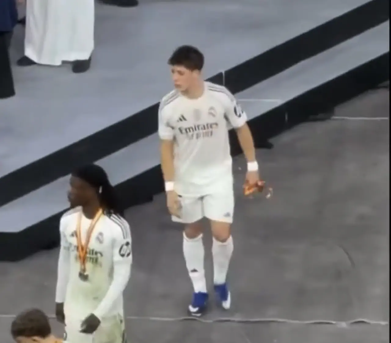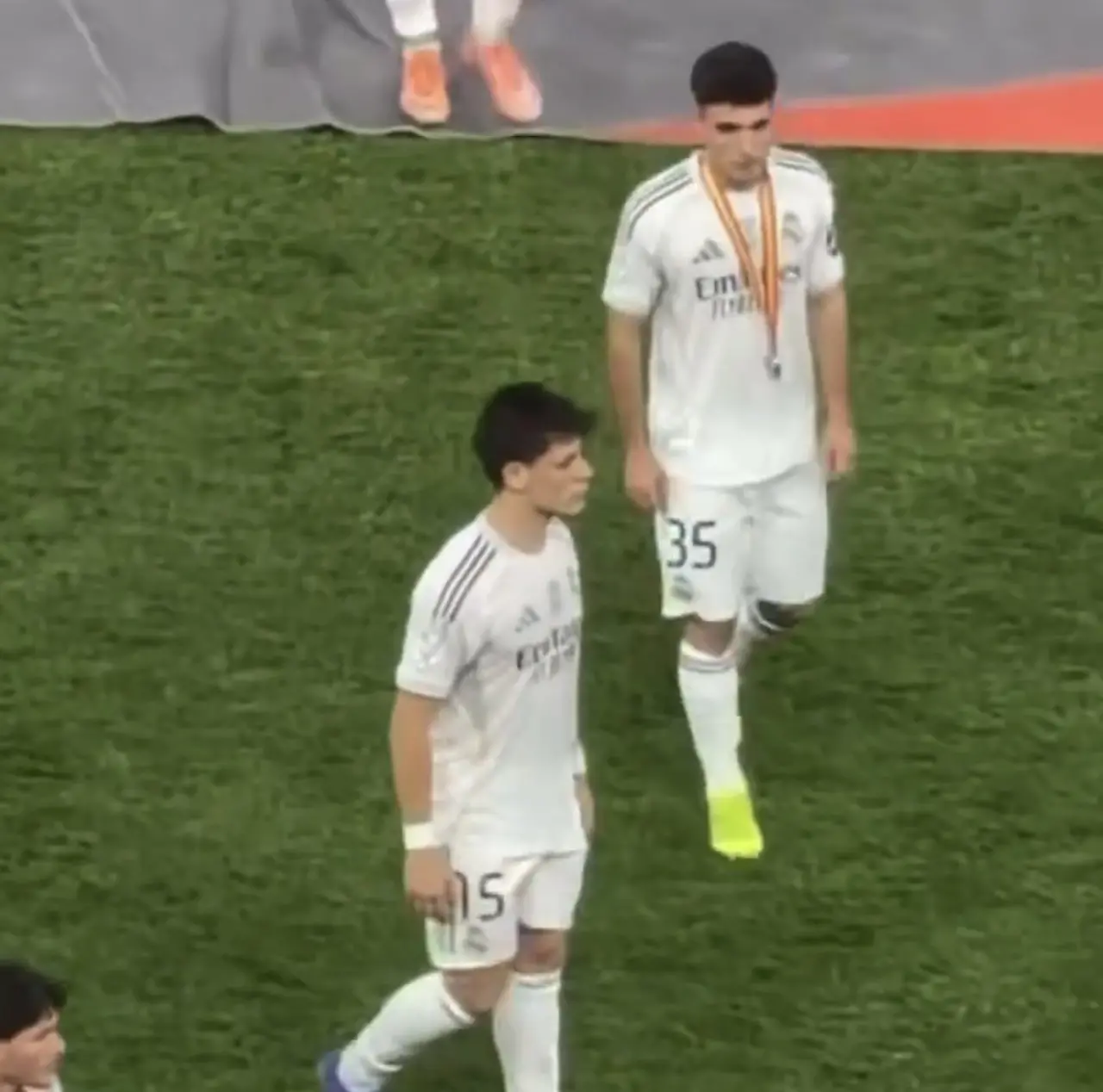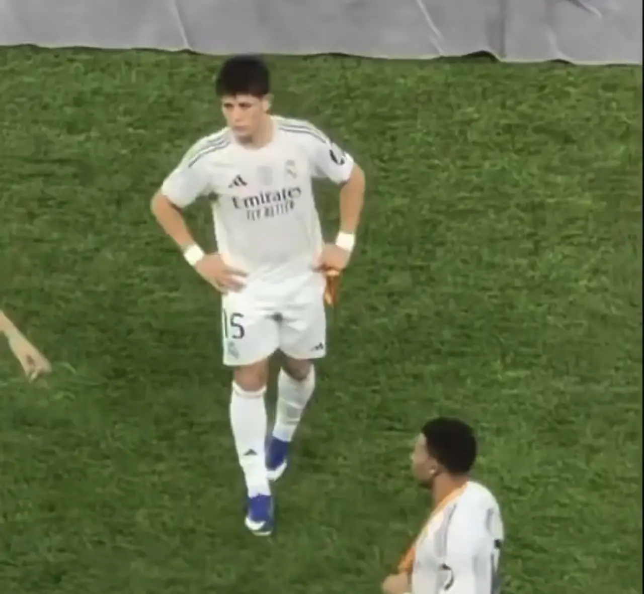 Arda Güler 22 dakika oynamasına rağmen, yine üzülüyor.Görüntülerde diğer Real Madrid’li topçuların yüzünde,her hangi bir üzüntüye benzer mimik dahi olmadığı dikkati çekiyor.Arda Güler’in bu durumu kameralara ve sosyal medyaya böyle yansıdı.